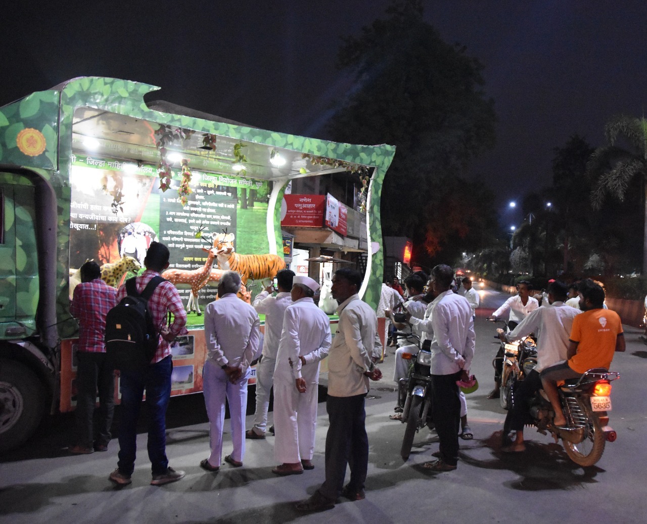 वनक्षेत्र अधिक असलेल्या जिल्ह्याच्या ग्रामीण भागात चित्ररथाच्या माध्यमातून जनजागृती करण्यात येत आहे. शालेय विद्यार्थ्यांनादेखील या माध्यमातून पर्यावरण विषयक माहिती देण्यात येत आहे. चित्ररथावर प्रकाशाची योजना असल्याने रात्रीच्यावेळीदेखील ग्रामीण भागात संदेश देण्यात येत आहेत. सोमेश्वर नगर येथे सायंकाळी उशिरा नागरिकांनी चित्ररथ पाहण्यासाठी गर्दी केली होती. बारामती उप माहिती कार्यालयाचे माहिती सहायक रोहिदास गावडे यावेळी उपस्थित होते.