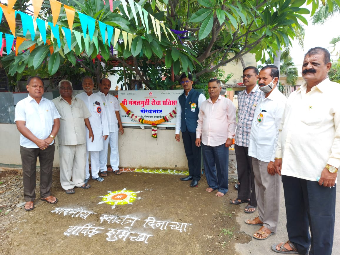 15 ऑगस्ट रोजी श्री मंगलमूर्ती सेवा प्रतिष्ठान च्या नामफलकाचे अनावरण करण्यात आले व वृक्षारोपण करण्यात आले या प्रसंगी प्रा दिलीप कापडणीस यांच्या हस्ते नामफलकाचे उदघाटन करण्यात आले.या वेळी प्रमुख पाहुणे म्हणून पत्रकार अनिल सावळेपाटील व अध्यक्ष शिवाजीराव सांवत,उपाध्यक्ष विकास देशपांडे,सचिव मुकुंद तारू,सहसचिव प्रा राजेंद्र अटफळकर,खजिनदार विकास फडतरे,सहखजिनदार बाळासो खराडे,आदित्य भातलवंडे,सुधाकर केंजगे, स्वप्नील जिरंगे,अक्षय रणसिंग, सोनू निश्चळ,अक्षय तांबे,सौ पाचपुते,मेजर मानसिंग वंजारी,सौ नम्रता काळे,राजाराम काळे,आनंद कापडणीस आदी नागरिक उपस्तीत होते.