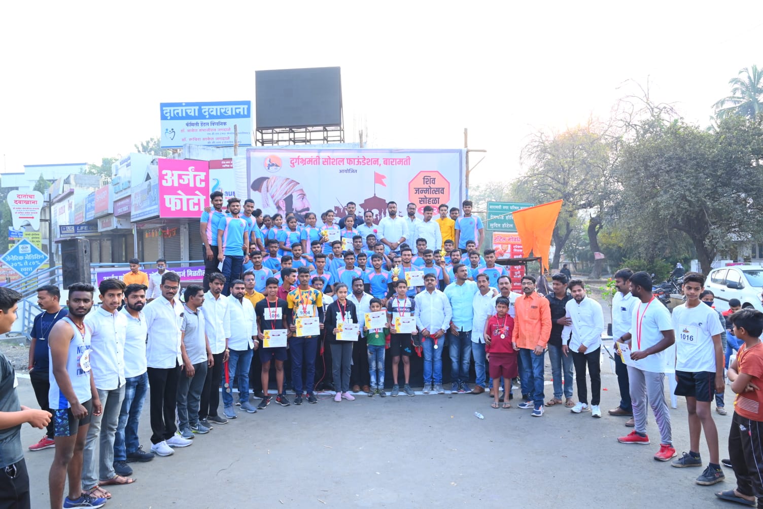 शिवजयंती निमित्त दुर्गभ्रमती सोशल फौंडेशन च्या वतीने शिव मॅरेथॉन स्पर्धेत मुलांच्या गटात सत्यमेव करिअर अकॅडमी चा संजय भोसले व मुलींच्या गटात धनशी गिरमे यांनी प्रथम क्रमांक मिळवला.