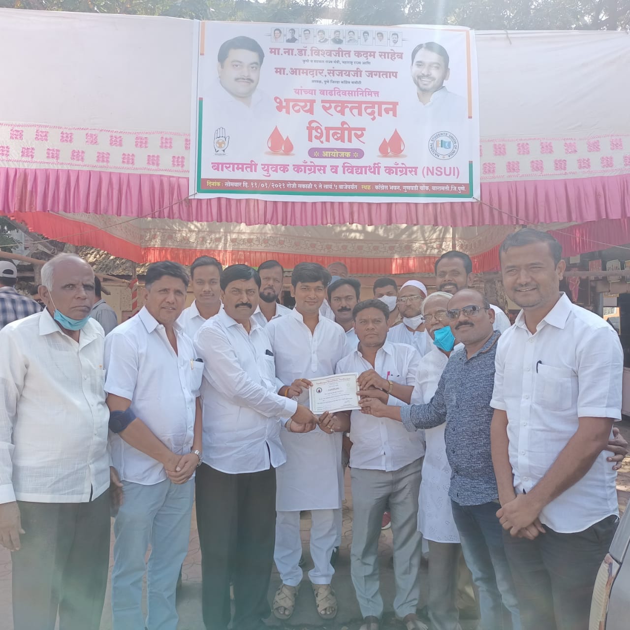 बारामती युवक काँग्रेसच्या वतीने रक्तदान शिबिराचे आयोजन