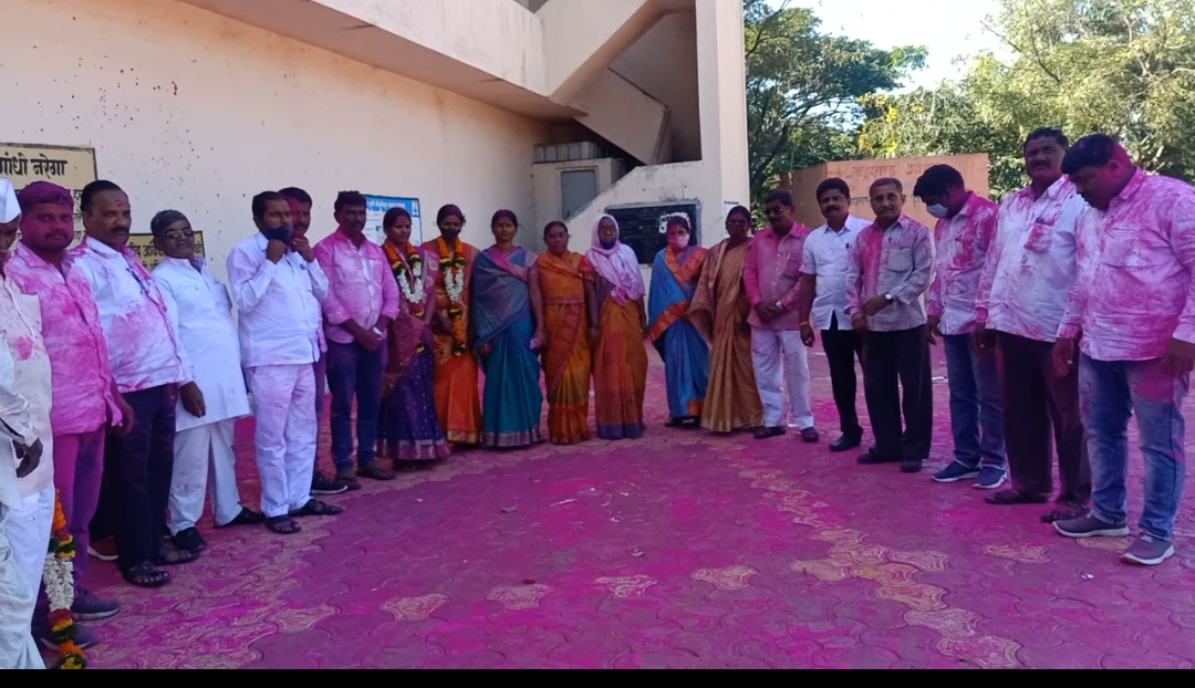 ढोलताशा, गुलाल आणि फटाक्याच्या आतषबाजीत सरपंचाचा जल्लोष..