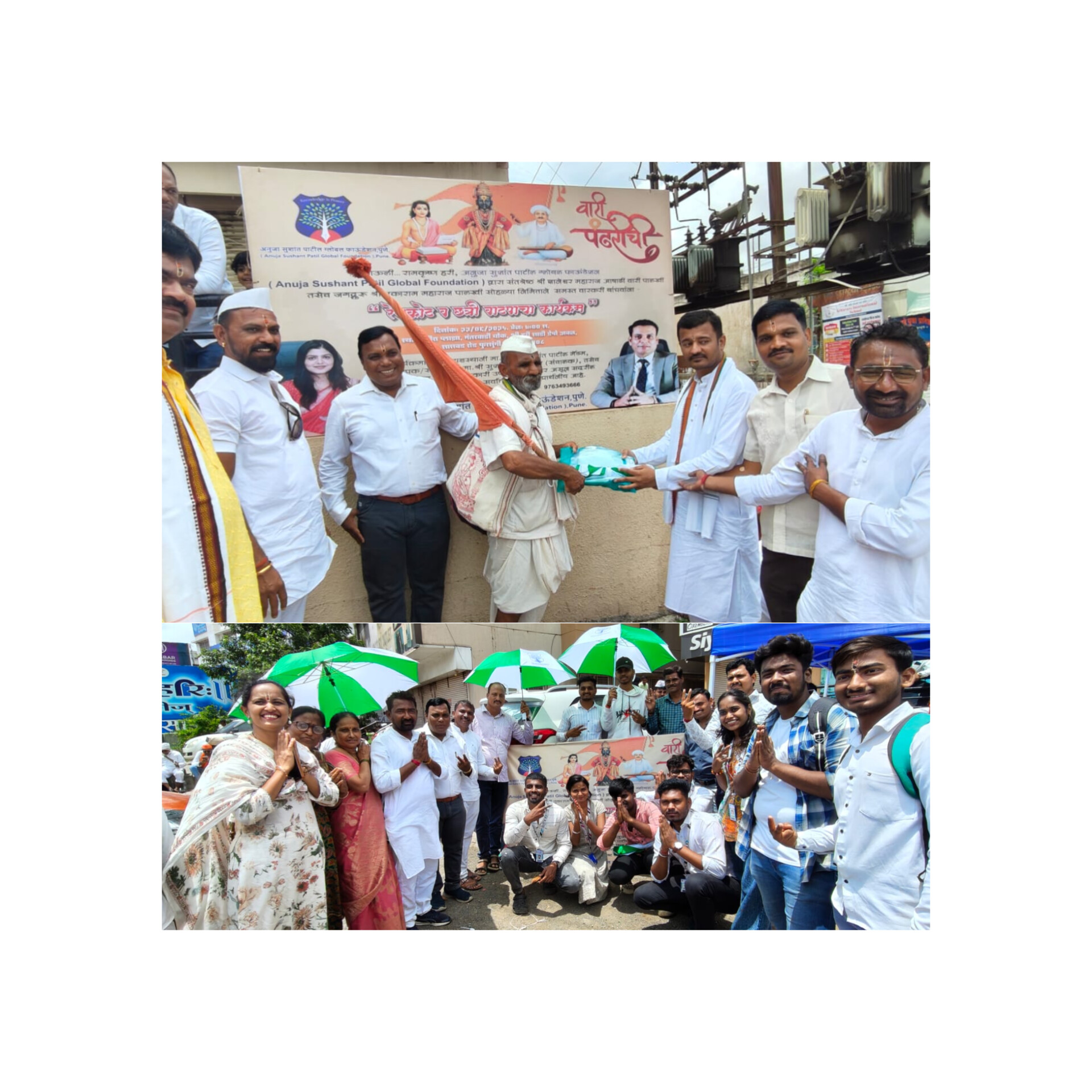 अनुजा सुशांत पाटील ग्लोबल फाऊंडेशनद्वारा वारकरी बांधवांना रेनकोट व छत्री वाटप