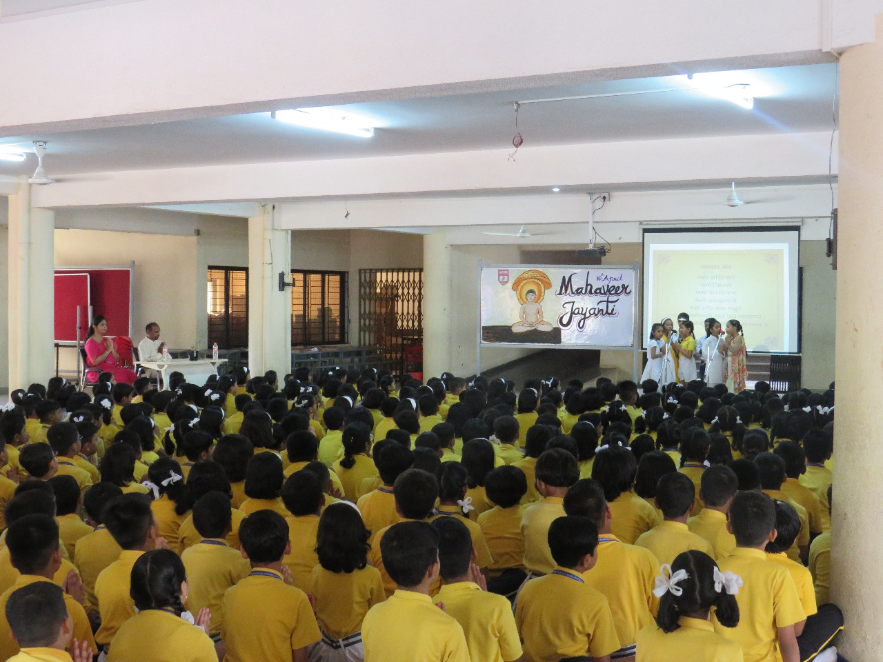 याप्रसंगी प्रमुख अतिथी म्हणून डॉ. सुधीर शास्त्री उपस्थित होते. कार्यक्रमाची सुरुवात महावीर स्वामींच्या प्रतिमेच्या पूजनाने केली. स्कूलच्या सर्व विद्यार्थ्यांनी नवकार मंत्राचे उच्चारण केले.