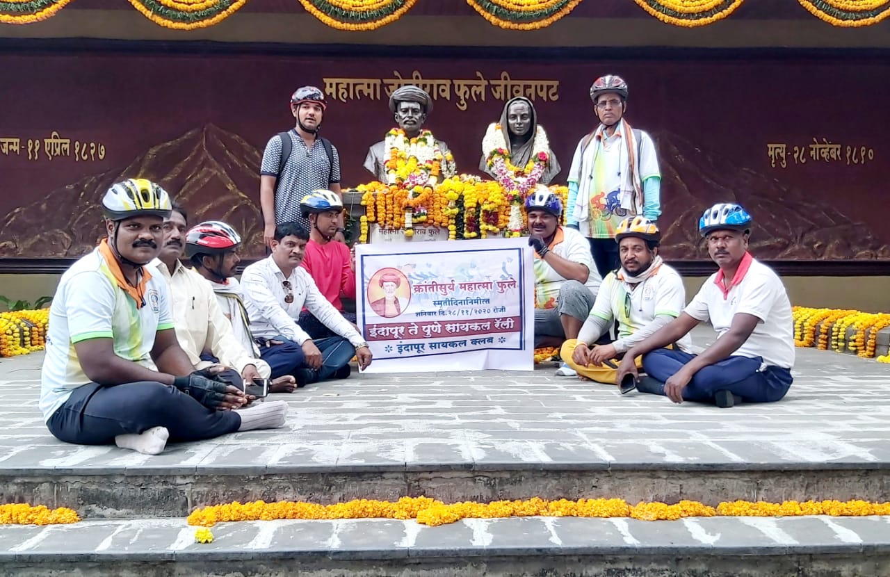 महात्मा फुले यांच्या स्मृतिदिनानिमित्त इंदापूर सायकल क्लबचा इंदापूर ते फुलेवाडा प्रवास
