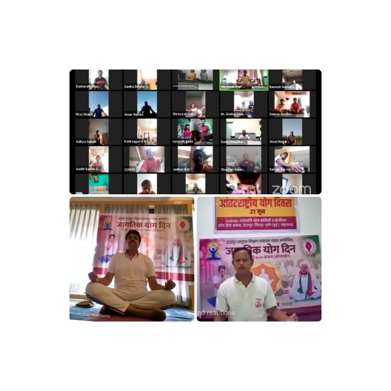 पतंजली योग समितीचे मार्गदर्शक दत्तात्रेय अनपट आणि समितीचे सहकारी यांच्या मार्गदर्शनाखाली यावेळी वेगवेगळ्या प्रकारची आसने, प्राणायामाचे प्रकार ऑनलाइन प्रात्यक्षिकांच्या माध्यमातून तसेच योगला असलेले महत्त्व यावेळी सांगण्यातआली.