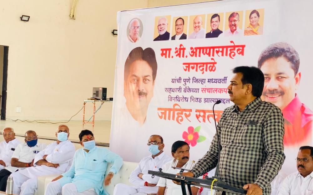 हर्षवर्धन पाटील पुढे म्हणाले, आपण विरोधी पक्षात असूनही बँकेची निवडणूक बिनविरोध झाली हे महत्वाचे आहे. जिल्हा बँकेच्या बिनविरोध निवडीसाठी वरिष्ठांची आपण चर्चा केली, जरी निवडणूक लागली असती तरी आपला एकतर्फी विजय निश्चित होता. आप्पासाहेब जगदाळे यांनी गेली १९ वर्षे बँकेचा कारभार अतिशय चांगल्या पद्धतीने केला आहे. राजेंद्रकुमार घोलप, शिवाजीराव निंबाळकर, अविनाश घोलप यांनीही यापूर्वी बँकेवर संचालक म्हणून काम केले.