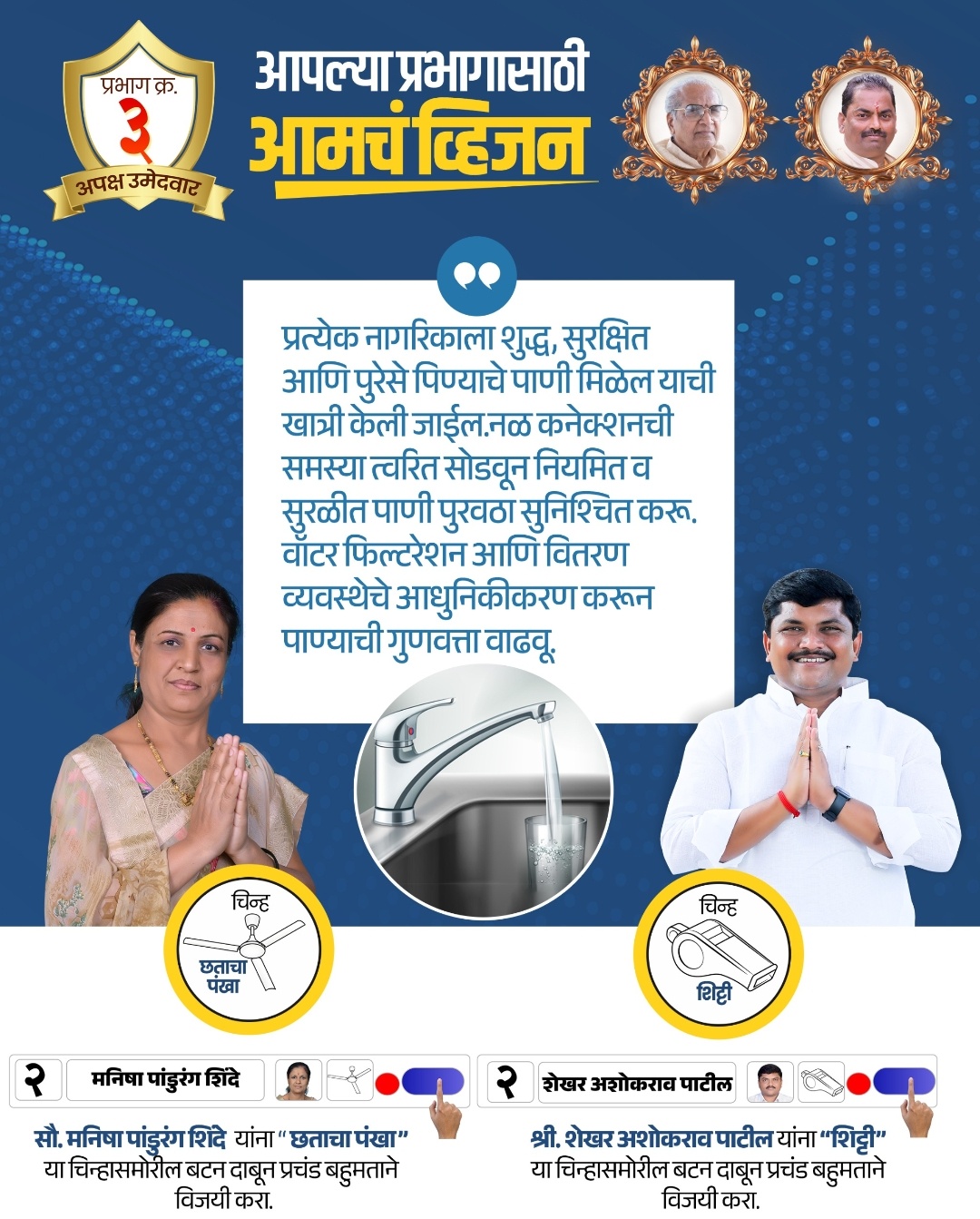 नगरपरिषद निवडणुकीत दोन्ही गटानी यावेळी सर्वाधिक नवख्या व युवा उमेदवारांना संधी दिल्याचे दिसुन येत आहे. सध्या वार्ड निहाय प्रचार सुरू आहे.अपक्ष उमेदवार शेखर पाटील (शिट्टी) व मनिषा पांडुरंग शिंदे यांना (छताचा पंखा) गेल्या चार दिवसांपूर्वी अधिकृत चिन्ह मिळाले असून त्यामुळे सध्या मतदाराच्या घरोघरी जावुन भेटी गाठीचा प्रचार सुरू आहे. इंदापूर नगरपरिषद निवडणुकीत प्रभाग क्रमांक तीनमध्ये अपक्ष उमेदवार मनिषा पांडुरंग शिंदे व शेखर पाटील यांनी प्रचारात आघाडी घेतली असुन त्यांनी प्रभागातील प्रत्येक मतदाराच्या घरी भेट देवुन मतदारांशी संपर्क साधला आहे. मनिषा शिंदे व शेखर पाटील हे दोघे अपक्ष निवडणुक लढवत असुन हे दोघेही माजी नगरसेवक असल्याने त्यांना प्रचाराचा दांडगा अणुभव असुन त्यांनी प्रचारात वेग घेतल्याचे दिसुन येत आहे.