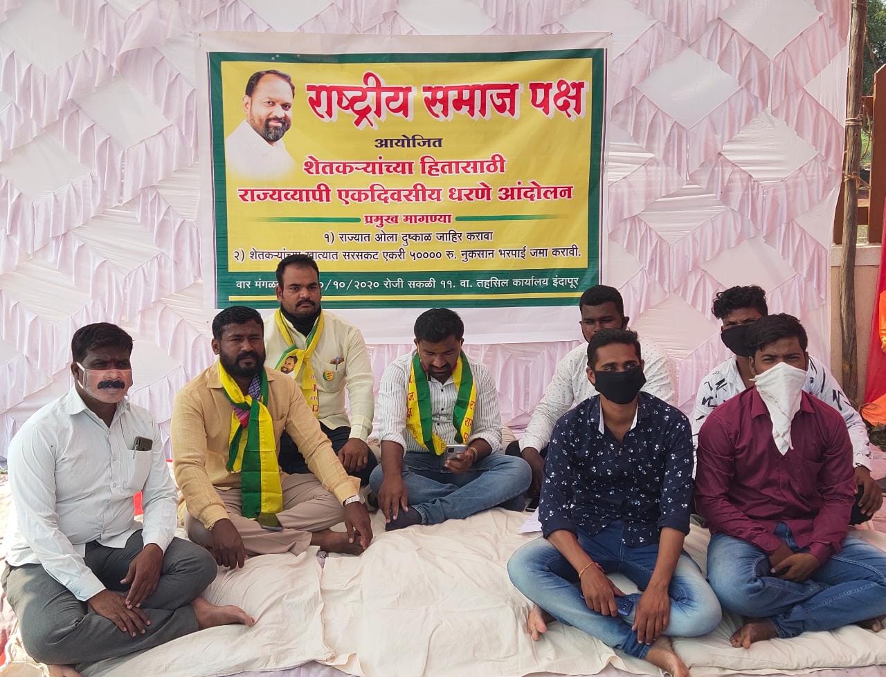 इंदापूर प्रशासकीय भवनासमोर राष्ट्रीय समाज पक्षाच्या वतीने एक दिवसीय धरणे आंदोलन