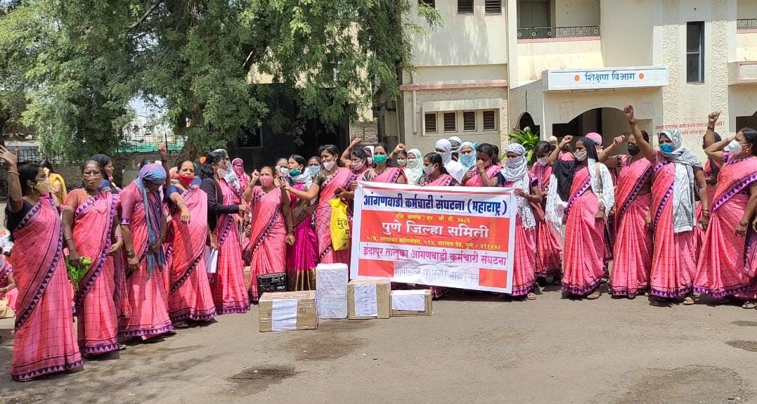 इंदापूर येथे अंगणवाडी सेविकांचे ‘मोबाईल वापसी’ आंदोलन