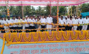 फोटो:-महात्मा फुलेनगर (बिजवडी)येथील कर्मयोगी शंकररावजी पाटील सहकारी साखर कारखाना लि., सहयोग ओंकार शुगर अँड डिस्टीलरी पॉवर प्रा.लि. चा गळीत हंगामाचा शुभारंभ हर्षवर्धन पाटील यांच्या हस्ते संपन्न झाला. यावेळी ओंकार शुगरचे चेअरमन बाबुराव बोत्रे पाटील उपस्थित होते.