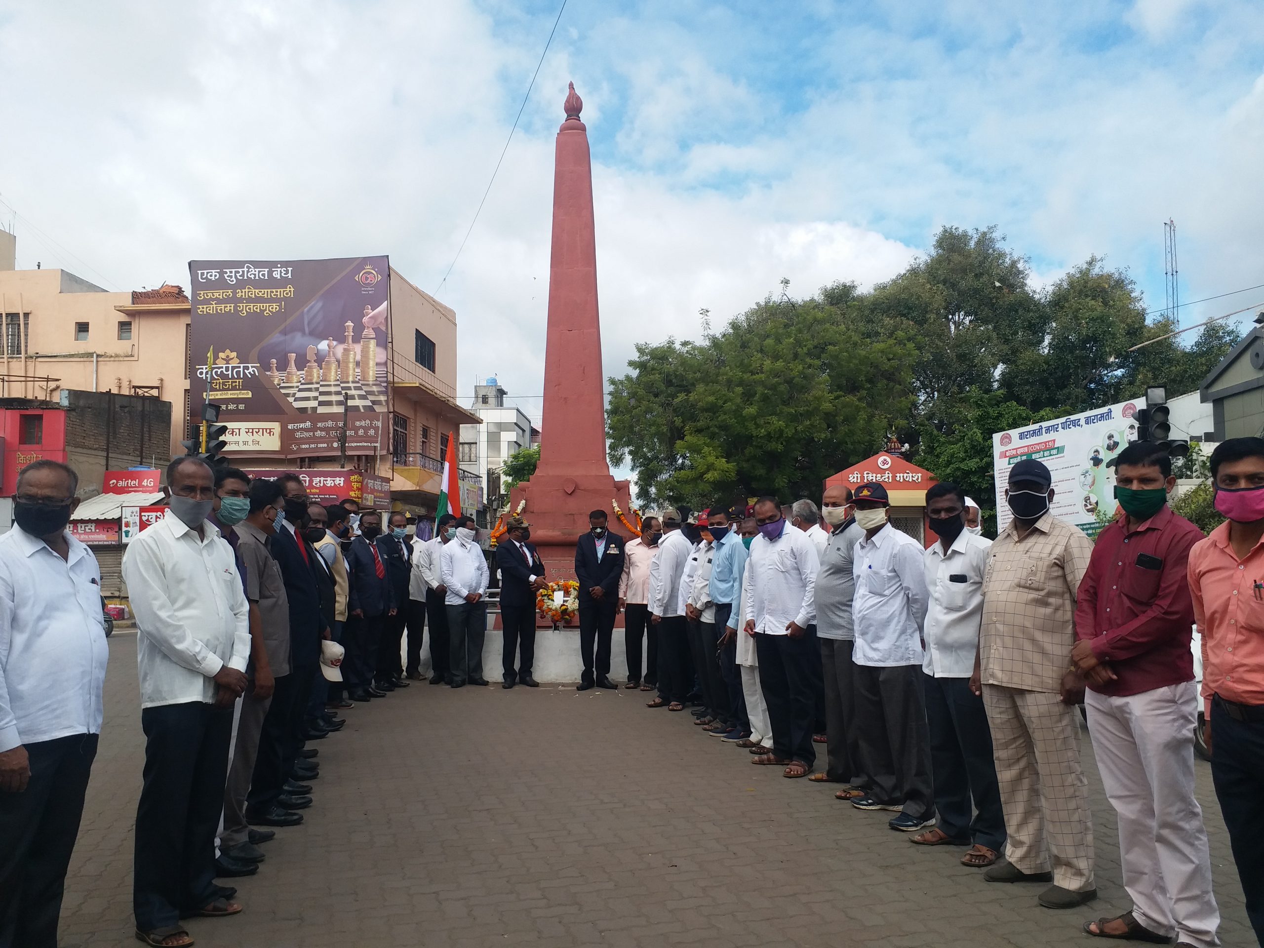 बारामती:वार्तापत्र बारामती तालुका जय जवान आजी माजी सैनिक संघटना यांच्या वतीने कारगिल युद्धातील शहीद जवानांना श्रद्धांजली वाहण्यात आली.भिगवण चौक येथील हुतात्मा स्तंभास अभिवादन करण्यात आले व भारत माता की जय ,वीर जवान अमर रहे आदी घोषणा देऊन राष्ट्रगीत सादर करण्यात आले.या वेळी संघटनेचे अध्यक्ष हनुमंत नींबाळकर यांच्या सहित शहर व तालुक्यातील संघटनेचे पदाधिकारी व आजी माजी सैनिक उपस्तीत होते.