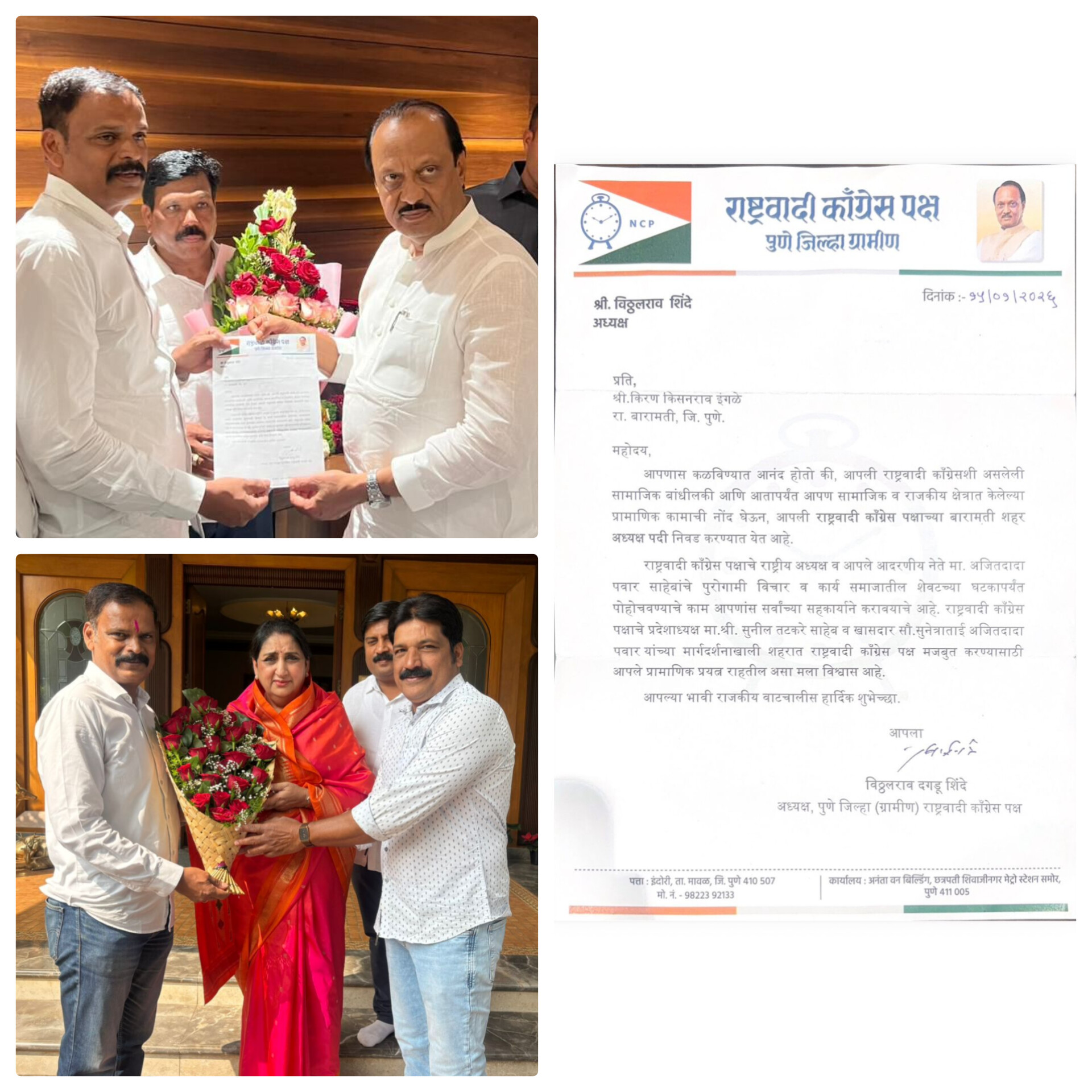 एकूणच, शहराध्यक्षपदी झालेल्या या बदलामुळे बारामतीच्या राजकीय वातावरणात नव्या ऊर्जेचा संचार झाला असून, येत्या काळात पक्षाच्या कार्यपद्धतीत सकारात्मक व परिणामकारक बदल दिसून येतील, अशी चर्चा राजकीय वर्तुळात सुरू आहे.