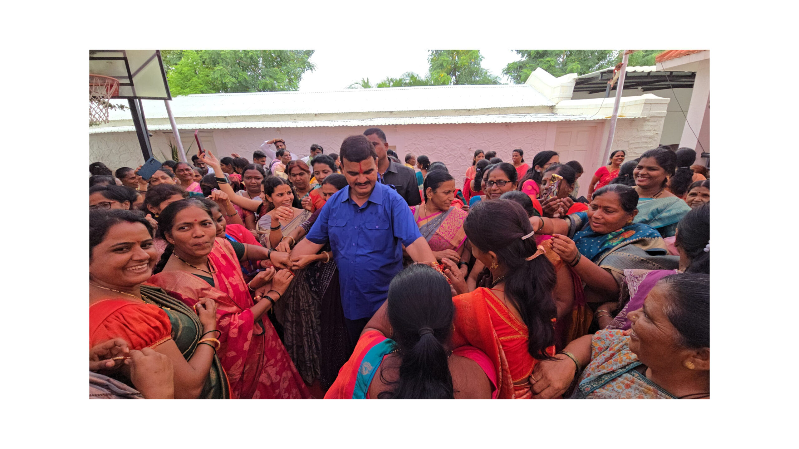 रक्षाबंधनाचे औचित्य साधून आज कृषिमंत्री दत्तात्रय भरणे यांच्या निवासस्थानी भव्य राखी बांधण्याचा कार्यक्रम आयोजित करण्यात आला होता. सकाळ पासूनच तालुक्यातील तसेच राज्याच्या विविध भागांतून आलेल्या बहिणींची भरणे निवासस्थानी गर्दी झाली होती. प्रत्येक बहिणीने प्रेम, आपुलकी आणि विश्वासाचे प्रतिक असलेली राखी त्यांच्या हातावर बांधली आणि त्यांच्या दीर्घायुष्यासाठी शुभेच्छांचा वर्षाव केला.