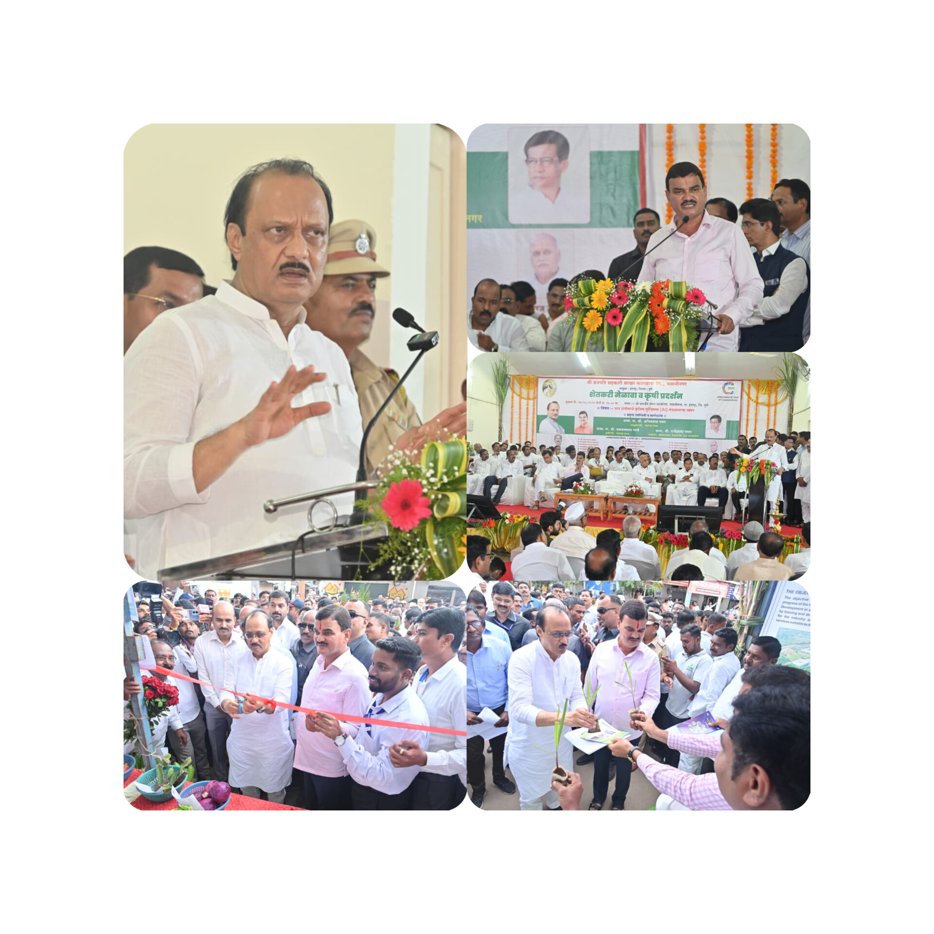 यावेळी मान्यवरांनी कृषी प्रदर्शनाची पाहणी केली. या प्रदर्शनात कृषी विभागाने आपल्या योजना, व्हीएसआय, विविध ठिबक संच उत्पादक, पाईप उत्पादक कंपन्या, ट्रॅक्टर तसेच अन्य कृषी यंत्रे, औजारे, ड्रोन तंत्रज्ञान, एआयसह अन्य आधुनिक तंत्रज्ञान पुरवठादार, अन्न प्रक्रिया स्टॉल आदी लावण्यात लावण्यात आले होते.
