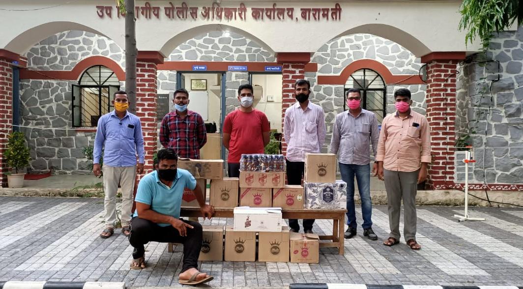 उपविभागीय पोलिस अधिकारी नारायण शिरगावकर यांना मिळालेल्या गोपनीय माहितीवरून तालुका पोलीस ठाण्याच्या हद्दीतील तांदूळवाडी येथील निर्मळवस्ती येथे सतीश विष्णू लोंढे (रा. तांदुळवाडी) हा त्याच्या स्वामी समर्थ किराणा दुकानांमध्ये बेकायदा बिगर परवाना देशी विदेशी दारूची विक्री करत असल्याची माहिती मिळाली होती. त्यानुसार सदर ठिकाणी छापा टाकला असता सदर इसम हा देशी-विदेशी दारुचासाठा करून विक्री करत असताना आढळून आला. या कारवाईत ५० हजार ६८ रुपयांचा माल जप्त करण्यात आला आहे. सदर इसमावर दारूबंदी कायदासह कोरोना विषाणू अंतर्गत अधिनियमान्वये बारामती तालुका पोलीस ठाण्यात गुन्हा दाखल करण्यात आला आहे.