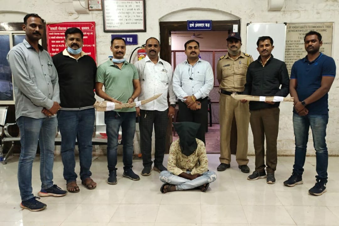 शिरूर येथील हर्षल मनोहर काळे वय 21 त्याच्याकडून दोन लोखंडी तलवारी पंधरा हजार रुपयांचा मुद्देमाल जप्त करण्यात आला आहे.
