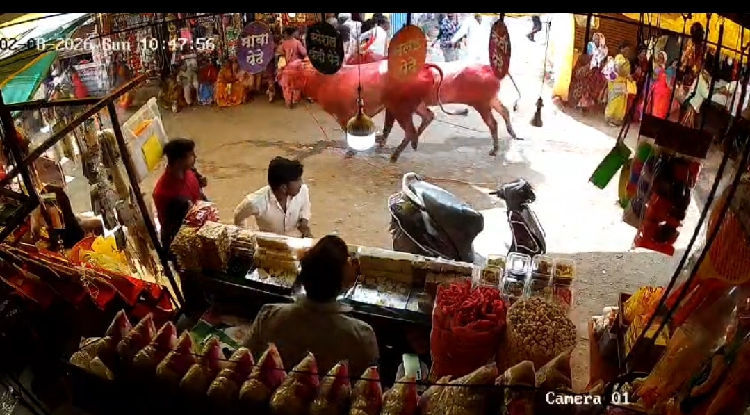 जेजुरी गडावर शर्यतीचा बैल उधळला; भाविकांची पळापळ – प्रकार सीसीटीव्हीत कैद