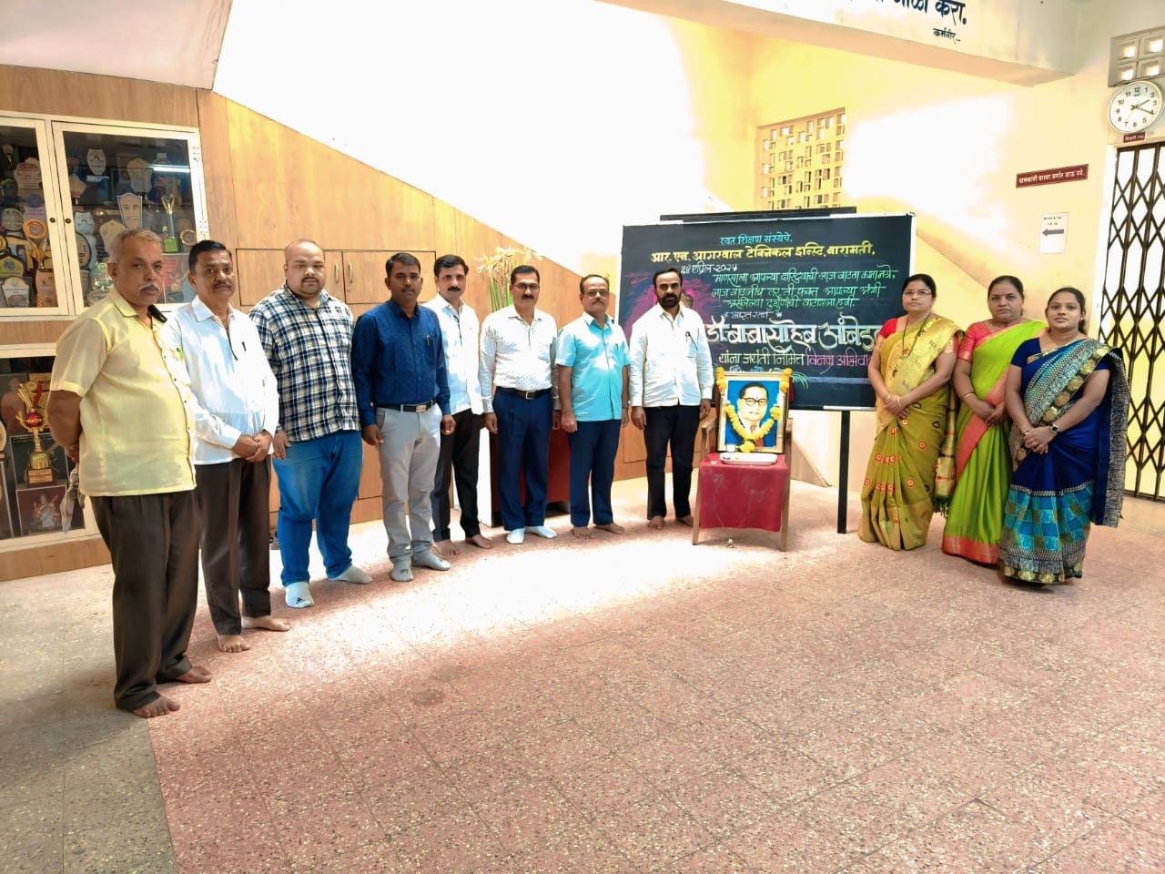 बारामती येथील रयत शिक्षण संस्थेच्या राधेश्याम एन. आगरवाल टेक्निकल इन्स्टिट्यूट व ज्युनियर कॉलेज या विद्यालयात भारतीय घटनेचे शिल्पकार डॉ. बाबासाहेब आंबेडकर यांना 134 व्या जयंतीनिमित्त अभिवादन करण्यात आले .