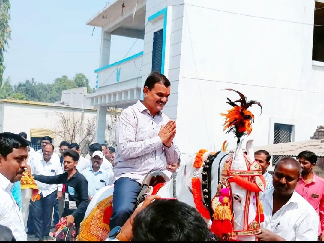 डिकसळ ग्रामस्थांकडून राज्यमंत्री दत्तात्रय भरणे यांची घोड्यावरून मिरवणूक