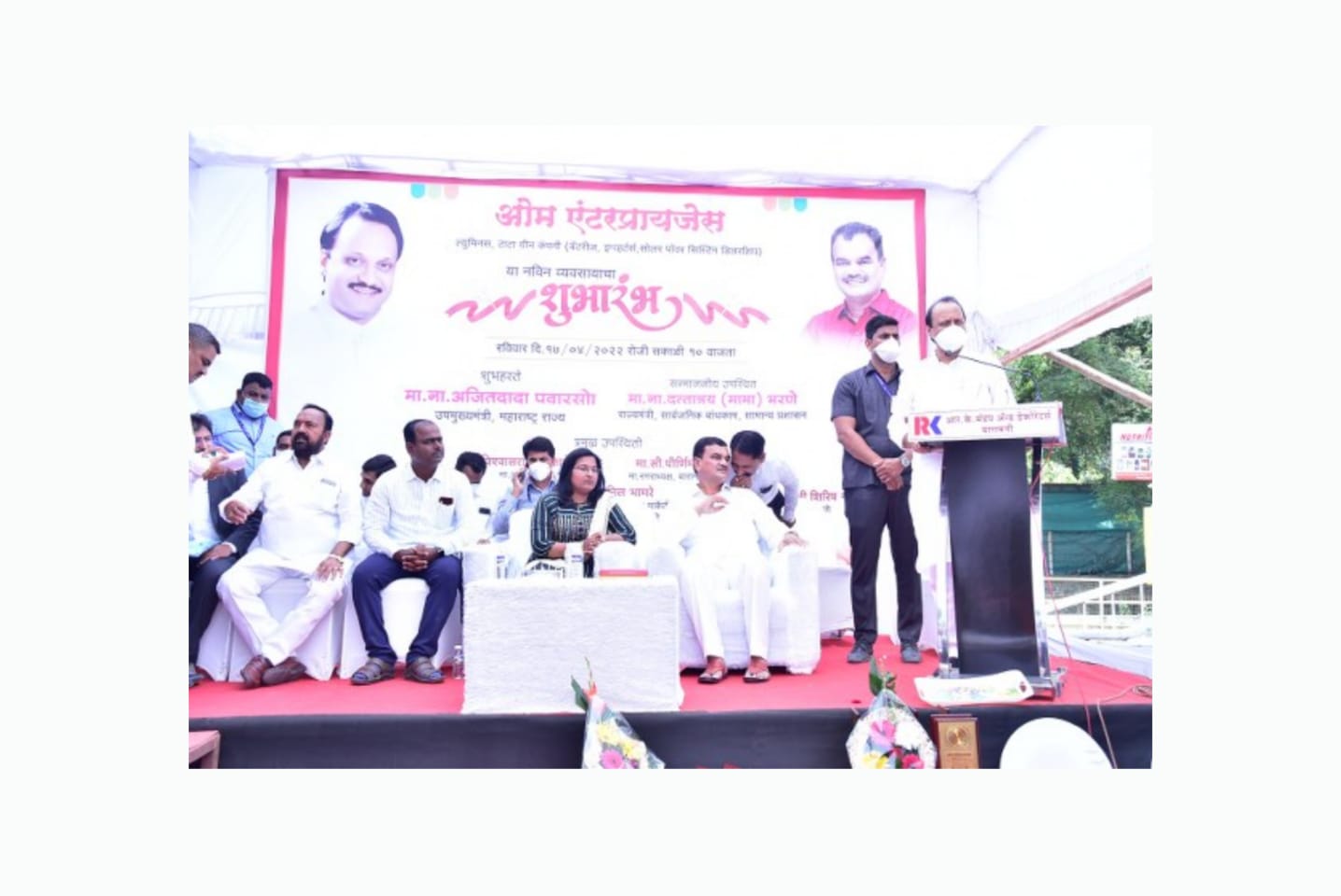 डॉ. सुजित वाघमोडे व सौ. कल्याणी वाघमोडे यांनी “ओम इंटरप्राईजेस” नवीन व्यवसायाचा शुभारंभ प्रसंगी मा. ना. अजित दादा बोलत होते.