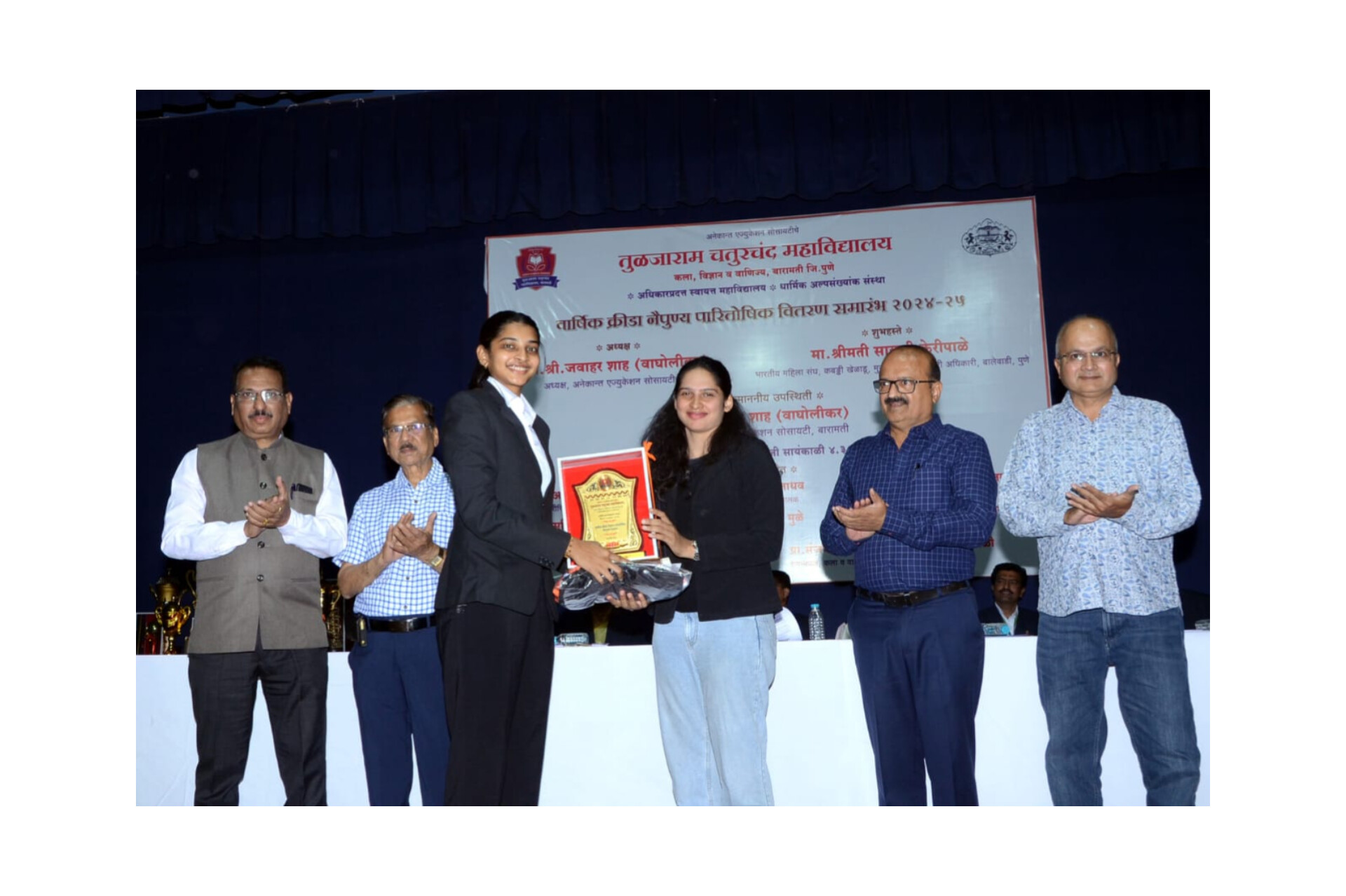 तुळजाराम चतुरचंद महाविद्यालयाच्या जीवराज सभागृहात वार्षिक क्रीडा नैपुण्य पारितोषिक वितरण समारंभ नुकताच संपन्न झाला.