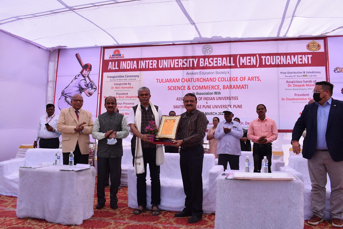 अखिल भारतीय आंतरविद्यापीठ बेसबॉल स्पर्धेच्या उद्घाटन समारंभाच्या कार्यक्रमाचे अध्यक्षस्थान अनेकांत एज्युकेशन सोसायटीचे सचिव श्री मिलिंद शाह (वाघोलीकर) यांनी भूषवले. तर सावित्रीबाई फुले पुणे विद्यापीठाचे कुलगुरु डॉ. नितीन करमळकर प्रमुख पाहूणे म्हणून उपस्थित होते.