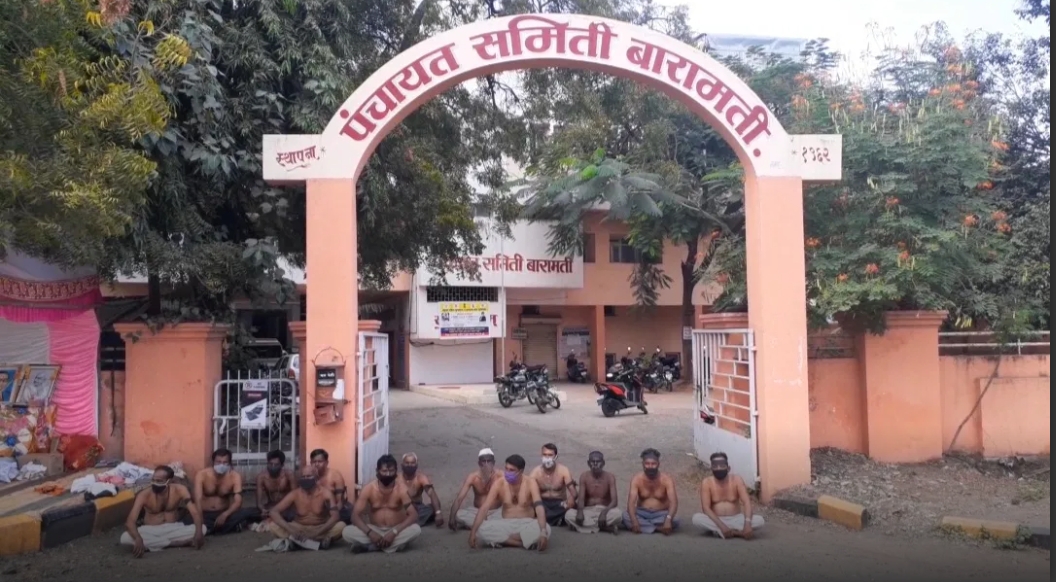 कोरोणाच्या कालावधीत ज्यांनी गावातुन कोरोणाला हद्दपार करण्याची मोहीम सुरु केली,रुग्णांच्या जवळ जाण्यासही ज्या ठिकाणी घरातील माणसे ही धजवत नव्हती त्यावेळी मात्र राज्यातील ग्रामपंचायत कामगार अनेक, छोटी छोटी कामे करणारे कामगार हे अगदी गावातील स्वच्छता करणे, सॅनिटायझर मारणे, बॅरिगेट लावणे यापासून ते रुग्णाला ॲम्बुलन्स मध्ये बसविणे, अगदी रुग्णाचा मृत्यू झाल्यास त्याच्यावर अंत्यविधी करण्याचेही काम ज्यांनी केले ते प्रशासनातील शेवटचा घटक असणारे ग्रामपंचायतीचे कर्मचारी यांना मात्र वेगवेगळ्या कारणास्तव कामावरून काढून टाकणे, पगार न देणे, बोनस न देणे अशा कारवायांना सामोरे जावे लागले आहे. त्या विरोधात बारामतीतील महाराष्ट्र राज्य ग्रामपंचायत कर्मचारी संघटनेच्या वतीने बारामती पंचायत समितीच्या समोर अर्धनग्न होऊन,मुंडण करून प्रशासनाचा निषेध नोंदवत आंदोलन सुरू केले आहे.
