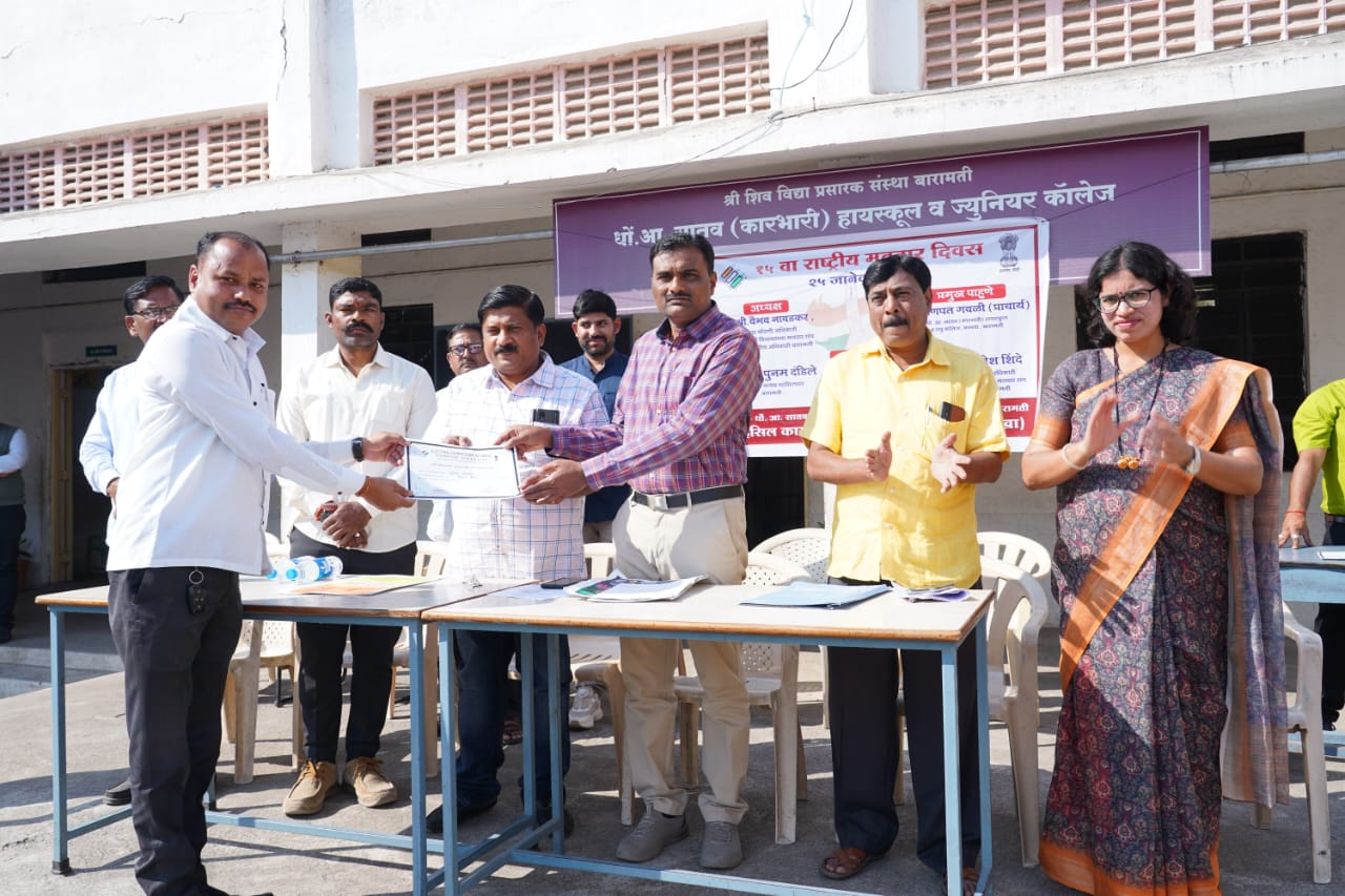 मतदार नोंदणी अधिकारी तथा उपविभागीय अधिकारी वैभव नावडकर यांच्या मार्गदर्शनाखाली १५ व्या राष्ट्रीय मतदार दिनानिमित्त बारामती विधानसभा मतदारसंघामार्फत धो. आ. सातव हायस्कूल येथे कार्यक्रमाचे आयोजित करण्यात आला.