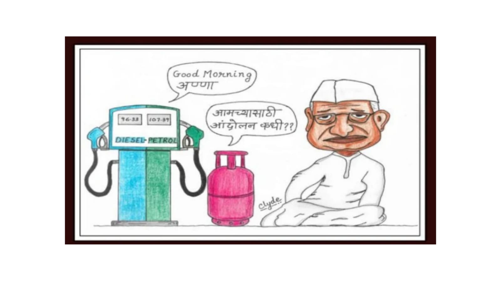 हे व्यंगचित्र अण्णांना पेट्रोल पंप गुडमॉर्निंग अण्णा बोलून जागा करत आहे. तर चक्क गॅस सिलेंडरच ‘आमच्यासाठी आंदोलन कधी?’ असा प्रश्न करत आहे. क्लाईड क्रास्टो यांच्या कुंचल्यातून रेखाटलेल्या व्यंगचित्रातून आतातरी अण्णा हजारे बोध घेतील का? असा सवाल राष्ट्रवादी काँग्रेसचे कार्यकर्ते विचारत आहेत.