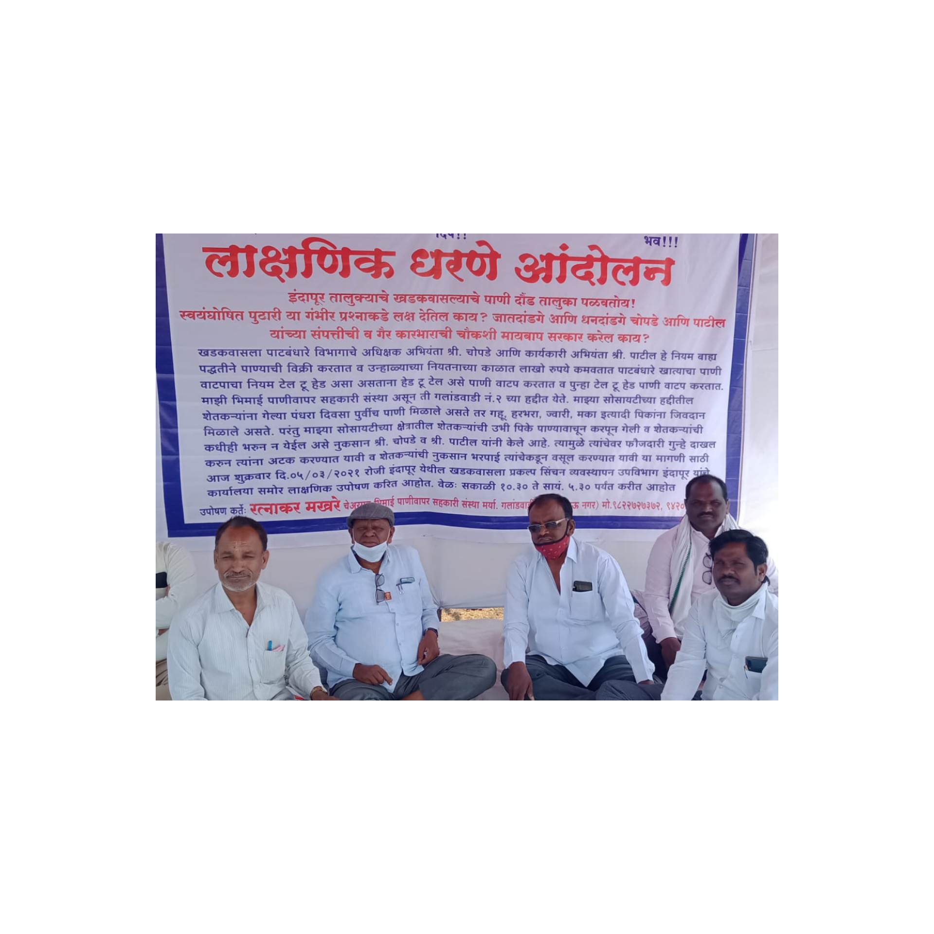 खडकवासला पाटबंधारे विभागाचे अधीक्षक अभियंता श्री.चोपडे आणि कार्यकारी अभियंता श्री.पाटील हे नियमबाह्य पद्धतीने पाण्याची विक्री करून उन्हाळ्याच्या नियंत्रणाच्या काळात लाखो रुपये कमावतात असा गंभीर आरोप रत्नाकर मखरे यांनी केला असून अधिकाऱ्यांवर कायदेशीर कारवाई करून त्यांना त्वरित अटक करावी व शेतकऱ्यांचे झालेले आर्थिक नुकसान सदरील अधिकाऱ्यांकडून सरकारने वसूल करून शेतकऱ्यांना सुपूर्द करण्याच्या मागणीसाठी मखरे हे खडकवासला प्रकल्प सिंचन व्यवस्थापन उपविभाग इंदापूर कार्यालयासमोर उपोषणास बसले आहेत.