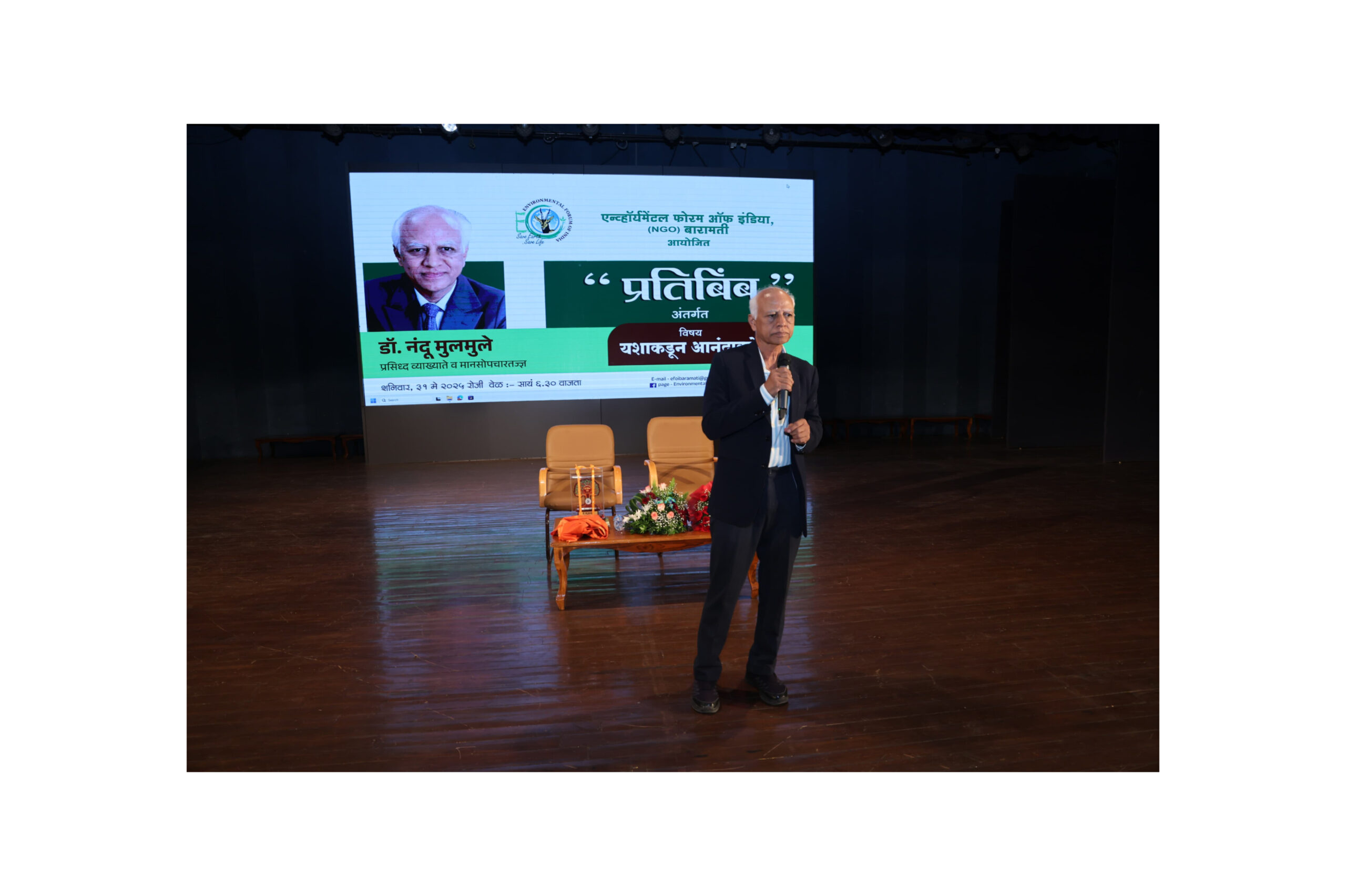 येथील एन्व्हॉर्यमेंटल फोरम ऑफ इंडियाच्या वतीने आयोजित प्रतिबिंब व्याख्यानमालेअंतर्गत यशाकडून आनंदाकडे या विषयावर शनिवारी (ता. 31) डॉ. मुलमुले यांनी बारामतीकरांशी संवाद साधला. रसिक बारामतीकरांची अभिरुची अधिक संपन्न व्हावी, प्रतिभावंतांशी त्यांना हितगुज साधता यावे, त्यांचे विचार ऐकता यावेत या उद्देशाने एन्व्हॉर्यमेंटल फोरम ऑफ इंडियाच्या वतीने खासदार सुनेत्रा पवार यांच्या मार्गदर्शनाखाली प्रतिबिंब व्याख्यानमालेचे आयोजन केले जाते.