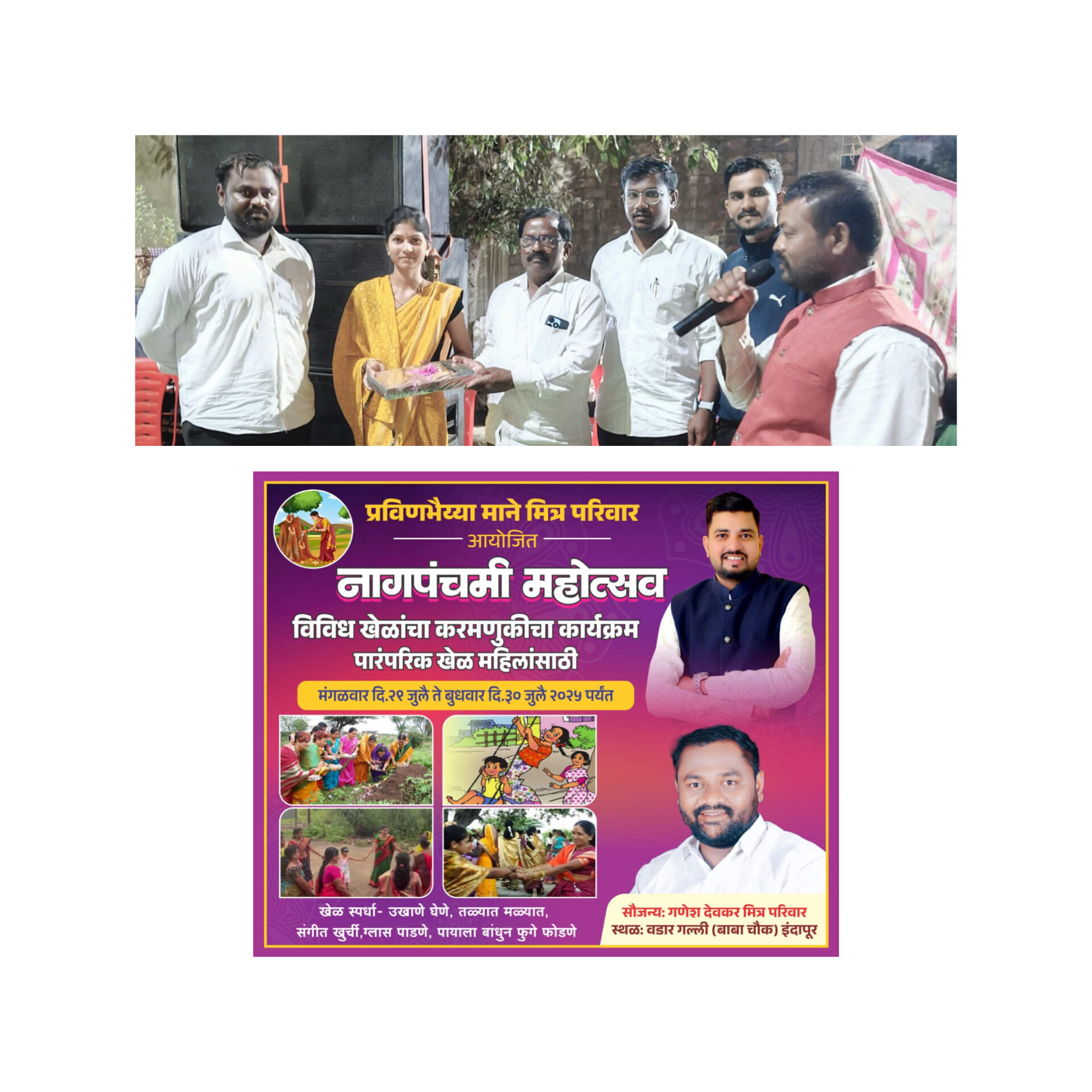 प्रवीणभैय्या माने मित्र परिवाराच्या वतीने इंदापुरात नागपंचमी महोत्सवाचे आयोजन.