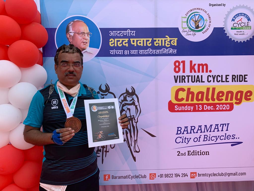 महसूल विभागाचे प्रमुख म्हणून प्रांताधिकारी दादासाहेब कांबळे हे काम करतात दैनंदिन जीवनात व्यस्त कामातून वेळ काढत आज 81 किलोमीटर सायकलवर रपेट मारली. माजी केंद्रीय कृषिमंत्री शरदचंद्रजी पवार साहेब यांच्या वाढदिवसानिमित्त बारामती सायकल क्लब यांच्यावतीने 81 किलोमीटरचे भव्य सायकलिंग रॅली चे आयोजन करण्यात आले होते. त्यामध्ये दादासाहेब कांबळे यांनी आपला सहभाग नोंदवला. बारामतीतून सुरू झालेला सायकलिंग चा प्रवास सोमेश्वर निरा व परत बारामती असा एकूण 81 किलोमीटरचा सायकलिंग प्रवास पार पडला. इंधन बचत व निरोगी आरोग्यासाठी सायकल गरजेची आहे. वाहनाचा अतिरेकी वापर त्यांमधून होणारे प्रदूषण यावर सायकल हा एकमेव उपाय आहे असे प्रांताधिकारी दादासाहेब कांबळे यांनी सांगितले यावेळी बारामती सायकल क्लब चे सर्व सदस्यांनी ही प्रांत अधिकाऱ्यांचे कौतुक केले.