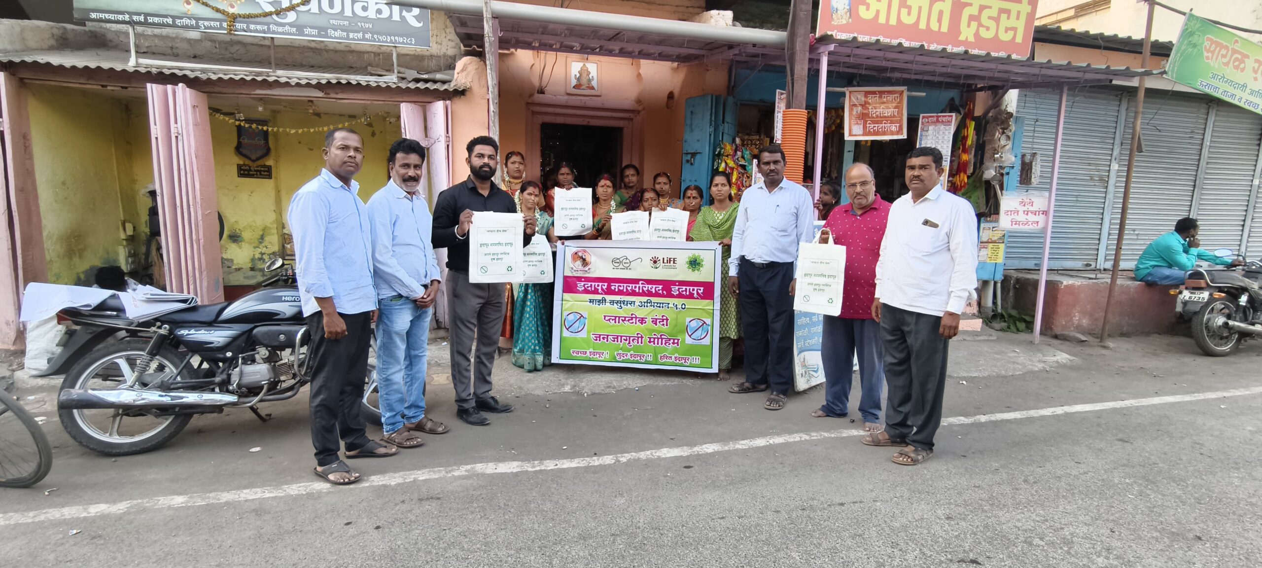 माझी वसुंधरा अभियान ५.० अंतर्गत इंदापूर नगरपरिषद अधिकारी व कर्मचाऱ्यांच्यावतीने प्लॅस्टिक बंदी जनजागृती मोहीम राबविण्यात आली. याबाबत माहिती देताना ढगे बोलत होते. या उपक्रमांतर्गत मकरसंक्रांती सणाचे औचित्य साधून ओवसायला आलेल्यामहिलांना कापडी पिशवी देऊन संस्कृती सोबत निसर्गाचे देखील संवर्धन करण्याचे आवाहन करण्यात आले.