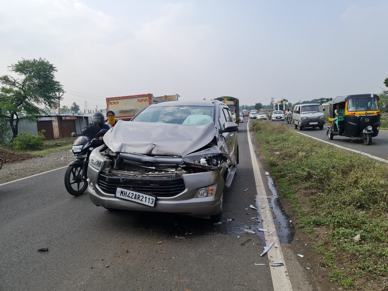 शाळेतील विद्यार्थी रस्त्यावर आल्यानंतर समोरील गाडीने अचानक ब्रेक मारल्यामुळे त्यांच्या गाडीने समोरील गाडीला पाठीमागून धडक दिल्यामुळे हा अपघात झाला. या अपघातांमध्ये त्यांच्या गाडीच्या एअरबॅग खुल्या झाल्या , त्यामुळे त्यांना दुखापत झाली नाही. गाडीचा वेग हा मर्यादित होता त्यामुळे देखील फारशी दुखापत झाली नाही. मात्र या अपघातांमध्ये ईनोवा गाडीचे मोठे नुकसान झाले आहे.