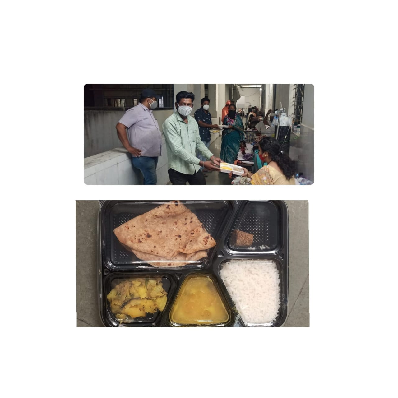 त्यांचे नातेवाईक खुप घाबरलेल्या मनस्थितीत आहेत . बरेच रूग्ण बारामती बाहेरील व ग्रामीण भागातील सुध्दा आहेत . अनेक रूग्णांचे नातेवाईक सुध्दा सोबत नाहीत . अशा रूग्णांना दोन वेळच्या जेवणाचा फार मोठा आधार बारामतीतील ध्येयवेडया दानशूर तरूणांनी दिला आहे . समाजाप्रती आपले काही देणे लागतो या भावनेपोटी सामाजिक बांधीलकी ओळखुन अन्नदान श्रेष्ठदान समजुन रोज दोन वेळेस सामुहिक वर्गणी करून कोरोना रूग्णांना स्वतःच्या हाताने फुडग्रेड मटेरीयल असलेल्या कप्प्याच्या प्लेटमध्ये गरम गरम जेवण पॅक करून सकाळी ११.३० वाजतां व संध्याकाळी ७.३० वाजतां दिन जात आहे .
