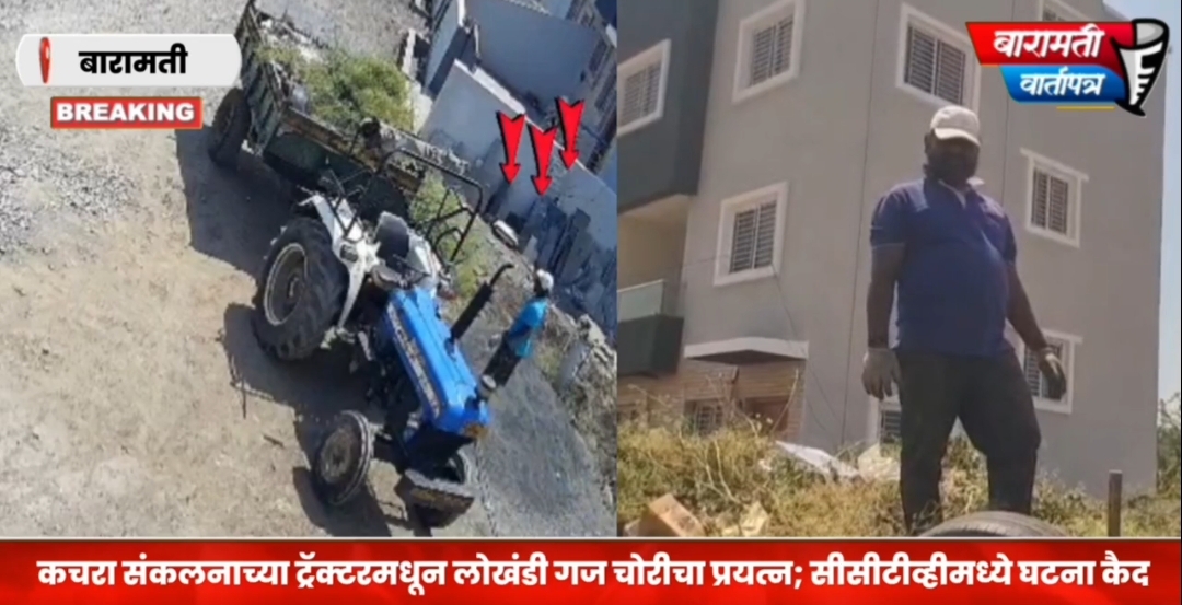 बारामतीत कचरा संकलनाच्या ट्रॅक्टरमधून लोखंडी गज चोरीचा प्रयत्न; सीसीटीव्हीमध्ये घटना कैद, इंडिकेट कंपनीवर प्रश्नचिन्ह