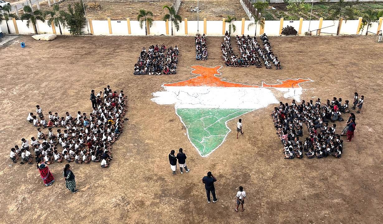 ही संकल्पना क्रीडा व इतिहास शिक्षक श्री. सचिन नाळे यांनी राबवली,भारताचा नकाशा कलाशिक्षक श्री.प्रदीप दरदरे यांनी मैदानावर काढला. भूगोल शिक्षिका सौ.राणीताई झगडे, सौ. हेमाताई सावंत,सर्व शिक्षक, शिक्षकेतर कर्मचारी व इयत्ता नववीतील विद्यार्थ्यांनी या संकल्पनेला सहकार्य केले.