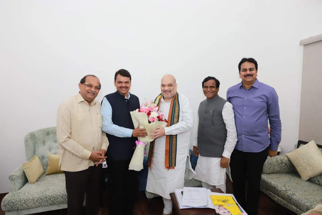 केंद्र सरकारने साखर कारखान्यांकडून दिला जाणार एफ.आर.पी. किंवा एम.एस.पी. पेक्षा अधिकचा दर हा ऊस खरेदीचा खर्च समजावा व त्यावर प्राप्तिकर आकारू नये, असा कायद्यात महत्त्वपूर्ण बदल केला. या ऐतिहासिक निर्णयाबद्दल केंद्रीय सहकार मंत्री अमित शहा यांचे माजी मुख्यमंत्री देवेंद्र फडणवीस, रेल्वे राज्यमंत्री रावसाहेब दानवे तसेच माजी सहकार मंत्री हर्षवर्धन पाटील, माजी कृषिमंत्री राधाकृष्ण विखे पाटील या भाजप नेत्यांनी नवी दिल्ली येथे बुधवारी (दि.२७) अभिनंदन करून सत्कार केला.