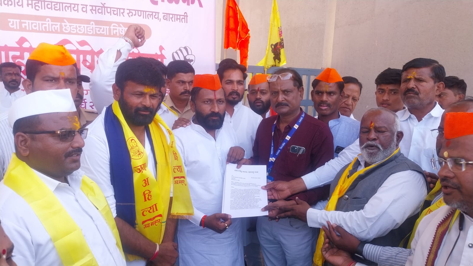 प्रा.लक्ष्मण हाके म्हणाले की, तत्कालीन मुख्यमंत्री एकनाथ शिंदे आणि उपमुख्यमंत्री देवेंद्र फडणवीस यांनी बारामतीतील शासकीय महाविद्यालय व रुग्णालयाला महाराणी पुण्यश्लोक अहिल्यादेवी होळकर यांचे नाव देण्याचा निर्णय घेतला होता. मात्र आता त्या नावात बदल करण्याचा प्रयत्न होत असल्याची माहिती मिळताच त्याच्या निषेधार्थ आम्ही एकत्र आलो आहोत.
