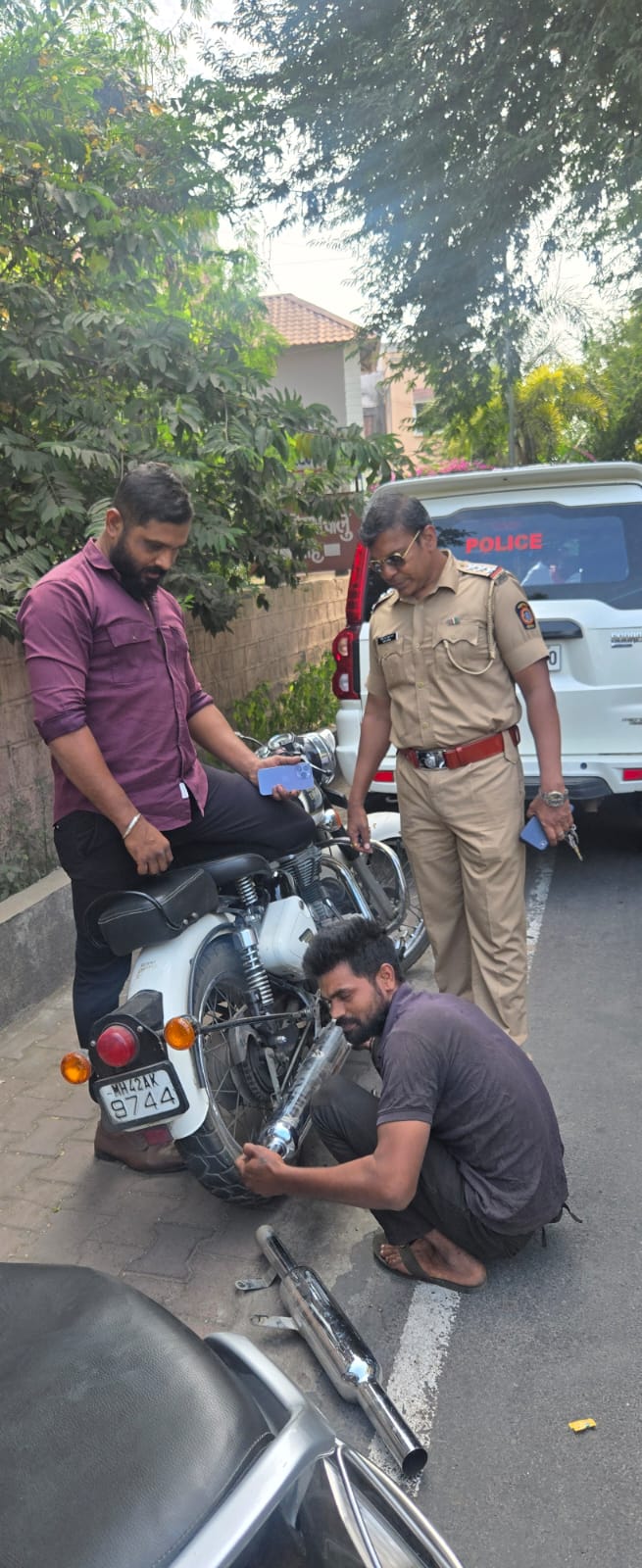 सायलेंसर जागेवरच काढून घेऊन वाहतूक शाखेत जप्त