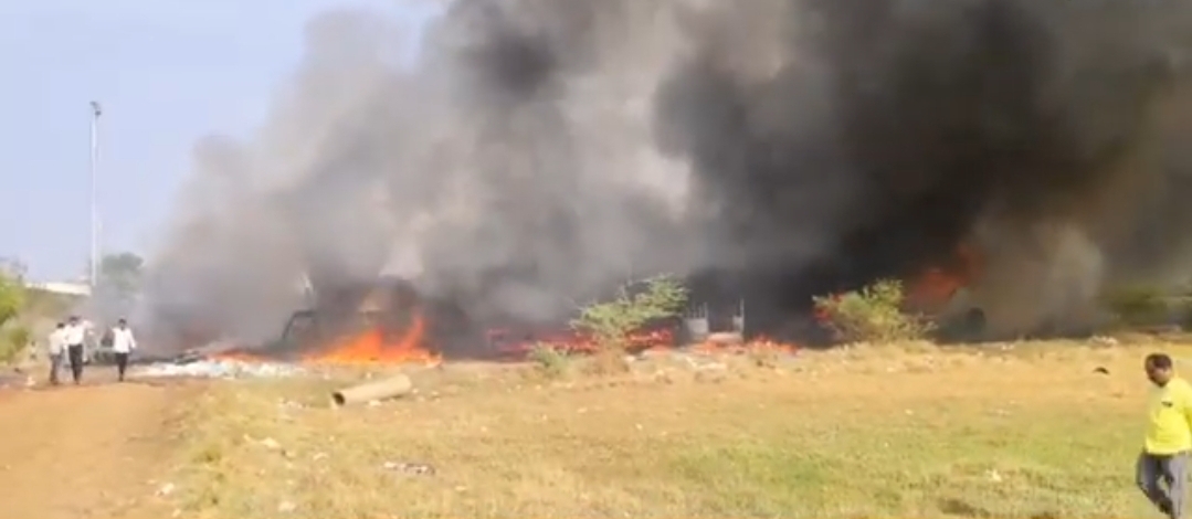 , स्क्रॅप मटेरील मोठ्या प्रमाणात जळाल्याने लाखों रुपयांचे मोठे नुकसा