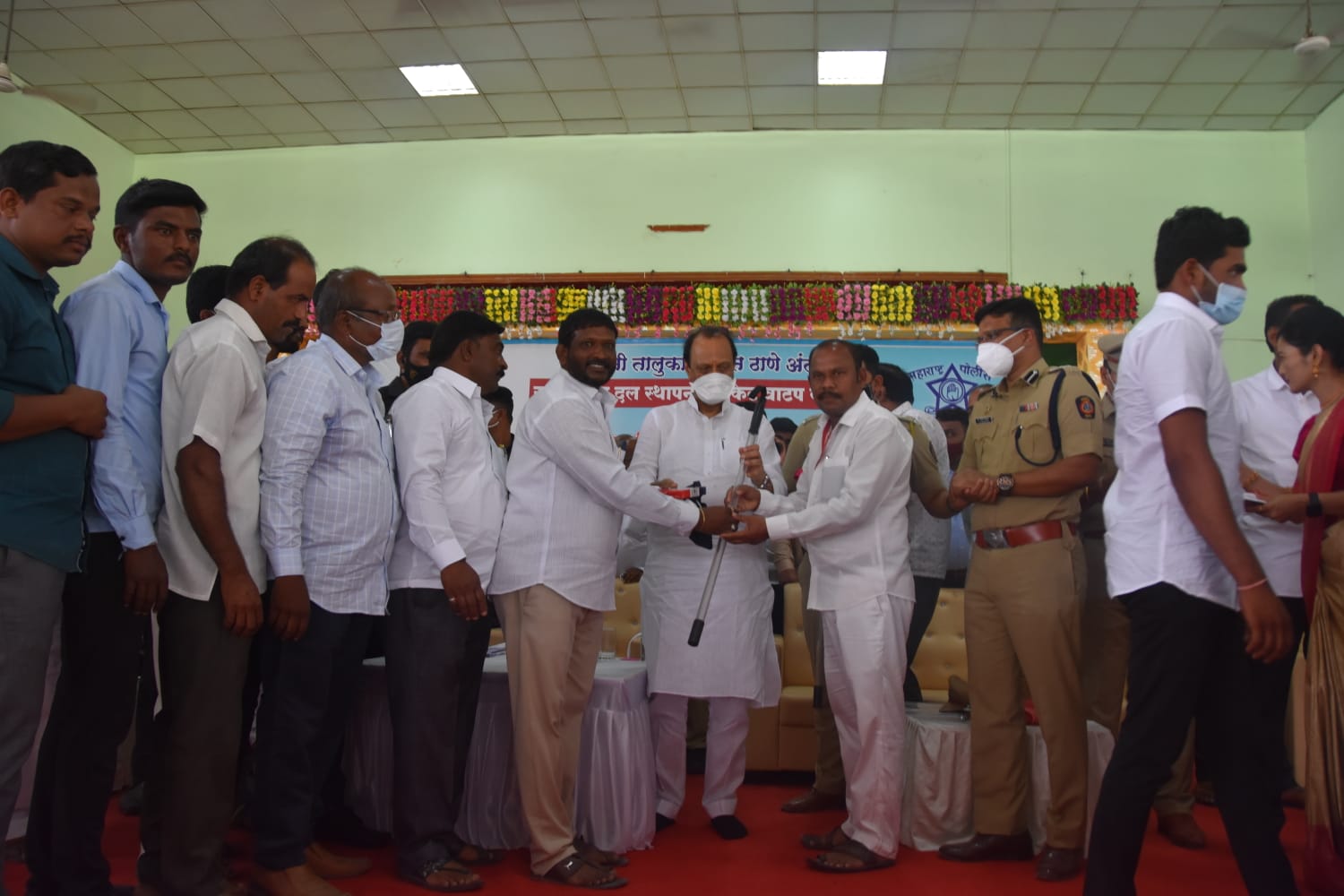 यावेळी ग्राम सुरक्षा दलातील व्यक्तींना सुरक्षा किटचे वाटप उपमुख्यमंत्री अजित पवार यांच्या हस्ते करण्यात आले. बालविकास प्रकल्प अधिकारी कार्यालय नागरी प्रकल्प हडपसर पुणे यांच्यावतीने कोविडमुळे मृत्यू पावलेल्या बारामती येथील अंगणवाडी मदतनीस विजया जोगदंड यांचा मुलगा प्रतीक जोगदंड याना सानुग्रह सहाय्य म्हणून ५० लाखांचा धनादेश उपमुख्यमंत्री अजित पवार यांच्या हस्ते सुपूर्द करण्यात आला. यावेळी बालविकास प्रकल्प अधिकारी संध्या नगरकर, पर्यवेक्षिका मिलन गीते उपस्थित होते.
