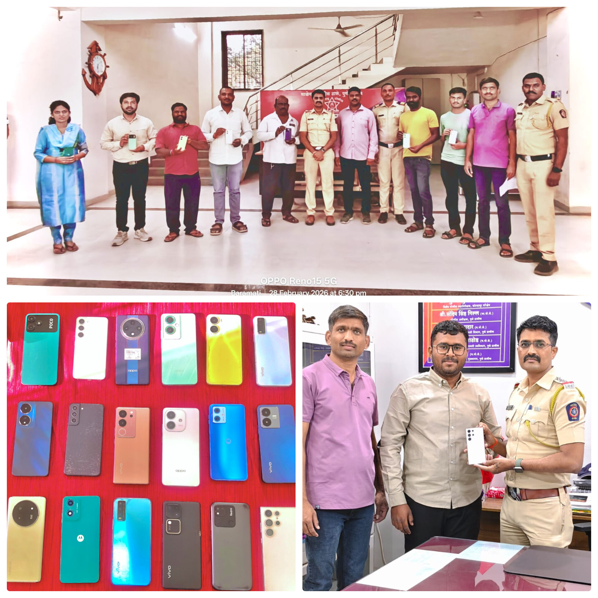 शोधण्यात आलेल्या मोबाईलमध्ये बारामती तालुक्यातील सांगवी येथील जयदीप बाळासाहेब कदम यांचा १ लाख १६ हजार रुपयांचा सॅमसंग गॅलॅक्सी अल्ट्रा २३, माळेगाव येथील राजवर्धन सतिश कुंभार यांचा ४२ हजार ९९९ रुपयांचा सॅमसंग गॅलॅक्सी एस २३, रामनगर येथील शंकर सायबू पवार यांचा ३६ हजार रुपयांचा विवो व्ही ३०, जळगाव सुपे येथील कल्याण जाधव यांचा २९ हजार ९९९ रुपयांचा ओप्पो एफ २७ प्रो यांसह विविध मॉडेलचे मोबाईल समाविष्ट आहेत.