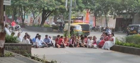 बारामती भिगवनरोडवर मोरयानगर रहिवाशांनी केला रास्ता रोको, ओढ्याच्या बेकायदेशीर बांधकामाबाबत कारवाई करण्याची मागणी
