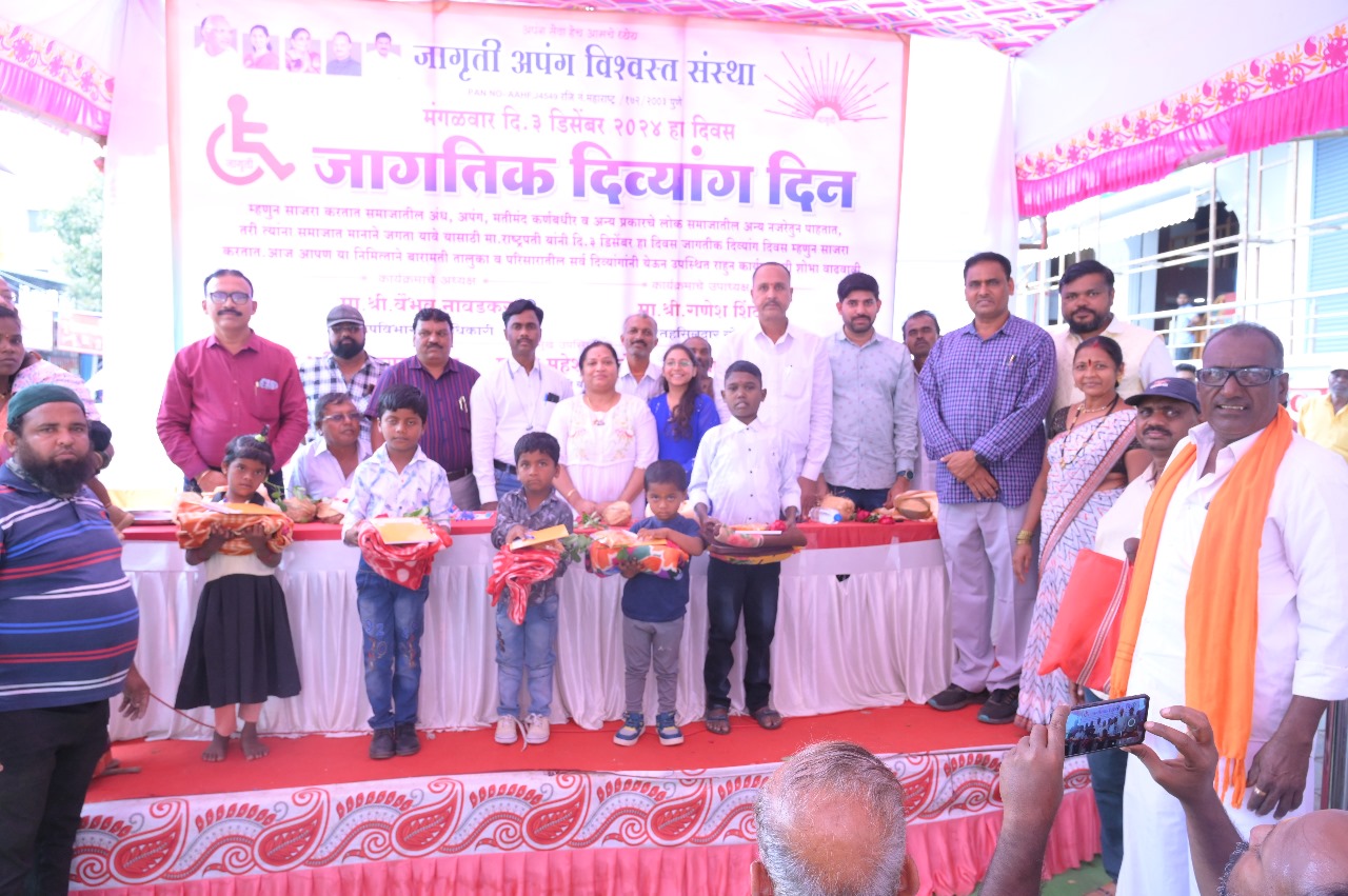 जागृती अपंग विश्वस्त संस्था,बारामती यांच्या वतीने जागतिक दिव्यांग दिनानिमित्त मंगळवार दि.०३ नोव्हेंबर रोजी बारामती शहर व तालुक्यातील अपंग ज्येष्ठ,तरुण,महिला व विद्यार्थी यांना दिव्यांग प्रमाणपत्र काढण्यासाठी मार्गदर्शन व दिव्यांग अपंग यांच्यासाठी असलेल्या शासनाच्या विविध योजनांची माहिती देण्यात आली आणि गरजू अपंग यांना ब्लॅंकेट वाटप व गरजू विद्यार्थ्यांना शालेय साहित्य वाटप करण्यात आले.