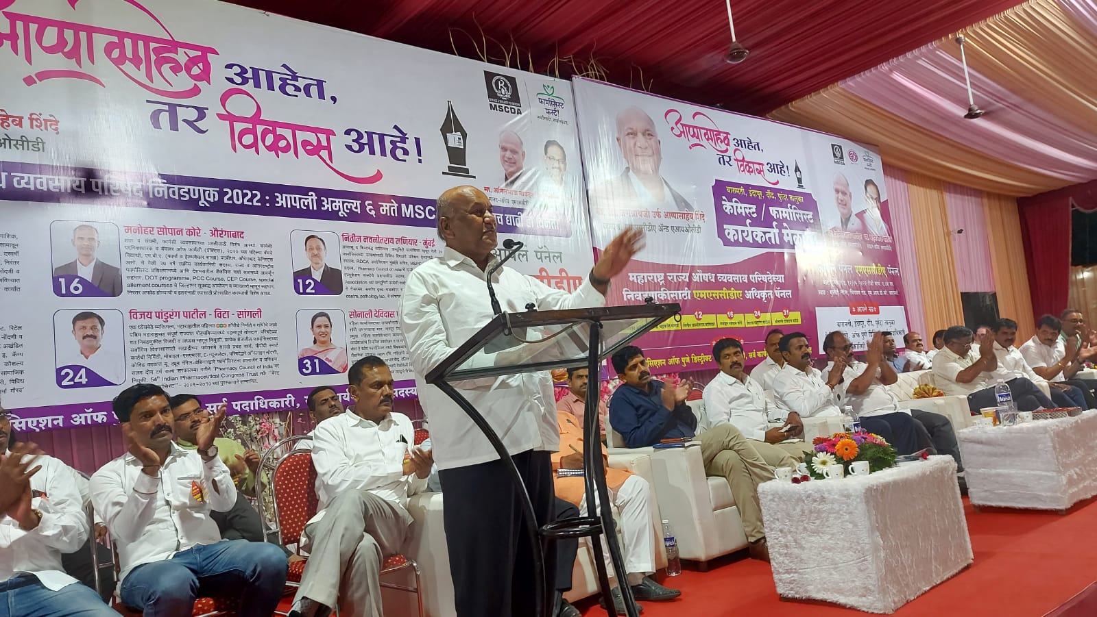 “ऑनलाइन धंदा,भांडवलदार चा प्रवेश, शासनाचे कडक कायदे ,या मुळे नफा कमी होत असताना रुग्णांना उत्कृष्ट सेवा व वाजवी दर द्या येत्या तीन ते चार वर्षात प्रत्येक शहरातील भांडवलदार चे मोठे स्टोअर बंद पडेल” असा आशावाद प्रत्येक व्यक्त्यांनी करताच मोठ्या प्रमाणात टाळ्या वाजवून दाद दिली जात होती प्रास्ताविक सी ए पी डी चे सदस्य सूर्यकांत खटके यांनी केले.
