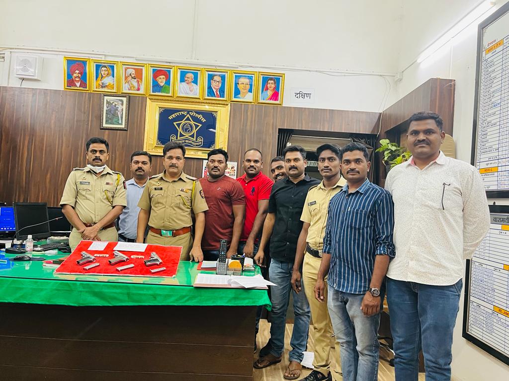 सदरची कारवाई माननीय पोलीस अधीक्षक डॉक्टर अभिनव देशमुख अप्पर पोलीस अधीक्षक मिलिंद मोहिते उपविभागीय पोलिस अधिकारी गणेश इंगळे यांच्या मार्गदर्शनाखाली पोलीस निरीक्षक सुनील महाडिक तसेच बारामती शहर पथकाचे गुन्हे शोध पथक पोलीस उपनिरीक्षक सागर ढाकणे अभिजीत कांबळे दशरथ कोळेकर कल्याण खांडेकर तुषार चव्हाण बंडू कोठे शाहू राणे गौरव ठोंबरे यांच्या पथकाने केली आहे अशा रीतीने या संशयित इसमाने विक्री केलेली तीन देशी पिस्टल किंमत सर्व मिळून एक लाखाचे हत्यारे जप्त करण्यात आलेली आहेत.
