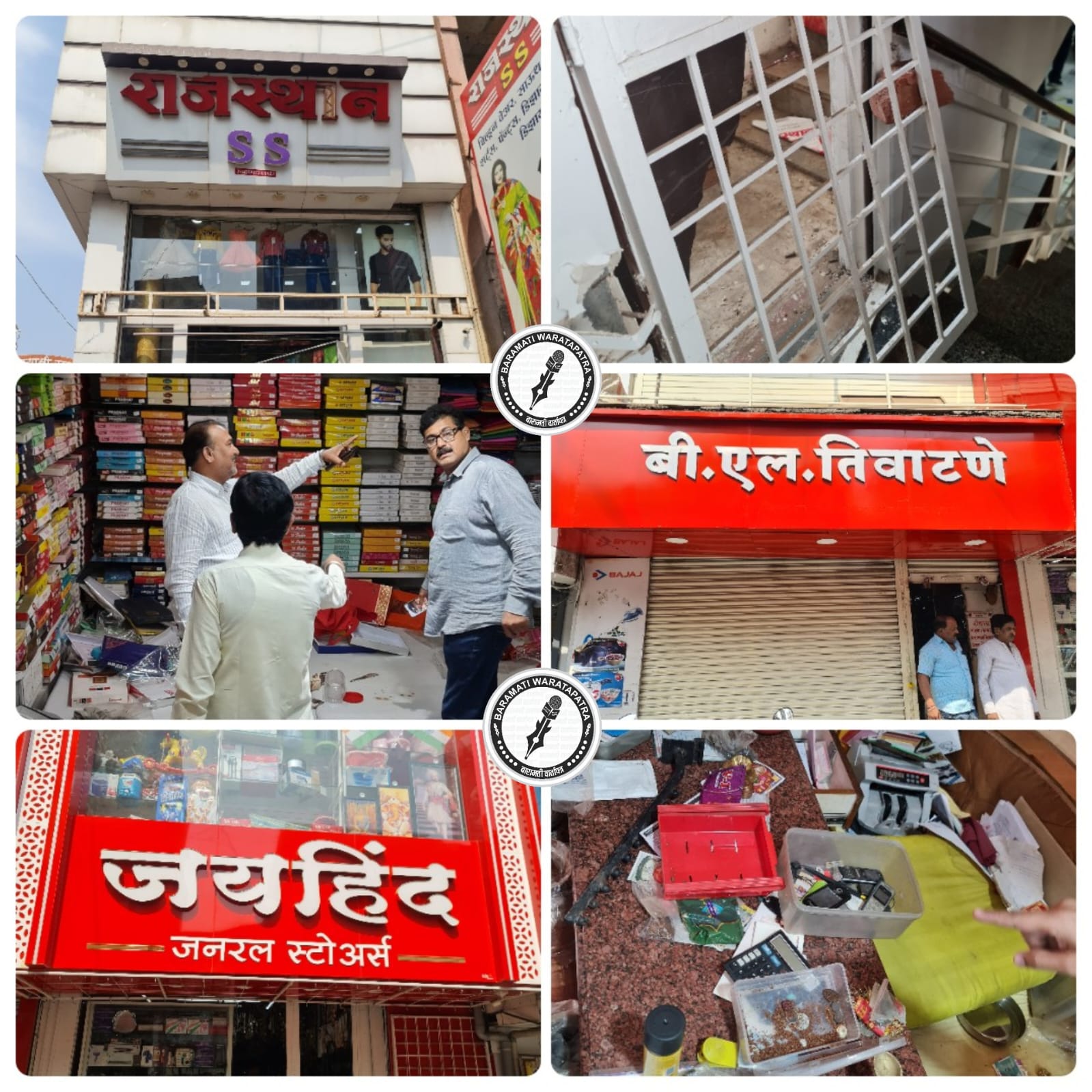 शहरातील मुख्य बाजारपेठेत असलेल्या राजस्थान एस एस,जय हिंद जनरल स्टोअर्स,बी.एल तिवाटणे या दुकानांमध्ये चोरी झाली आहे.विशेष म्हणजे चोरी करताना चोरटयांनी दुकानाच्या टेरेसचा वापर करून दुकानामध्ये प्रवेश केल्याची माहिती मिळाली आहे.राजस्थान एस एस या दुकानमधील जवळपास दोन ते अडीच लाख रुपयांचा तर जय हिंद आणि बी.एल तिवाटणे मधील काही किरकोळ रोख रक्कम आणि मुद्देमाल हि चोरीला गेल्याची माहिती मिळत आहे.अधिक तपास करत असताना आजूबाजूच्या दुकानांचे सीसीटीव्ही तपासले असता ते बंद असल्याचे निदर्शनास आले आहे.
