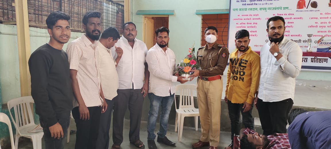 बारामती येथे ब्ल्यू पँथर सामाजिक विकास प्रतिष्ठान च्या वतीने मयुर भाऊ कांबळे यांच्या वाढदिवसाचे औचित्य साधुन रक्तदान शिबिराचे आयोजन करण्यात आले होते. प्रतिष्ठानच्या वतीने दरवर्षी वेगवेगळे उपक्रम राबविले जातात याहीवर्षी रक्ताचा तुटवडा जाणवू लागल्यावर प्रतिष्ठानच्या वतीने रक्तदान शिबिराचे आयोजन करण्यात आले होते. या शिबिरामध्ये एकूण 105 रक्तदात्यांनी रक्तदान केले.